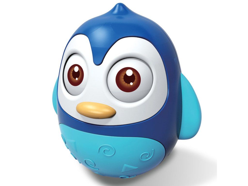 Hračka sa kolíše zo strany na stranu a vydáva jemné zvuky pripomínajúce zvončeky, ktoré zaujmú pozornosť bábätka. Pohyblivé oči tučniaka robia hru ešte zábavnejšou.