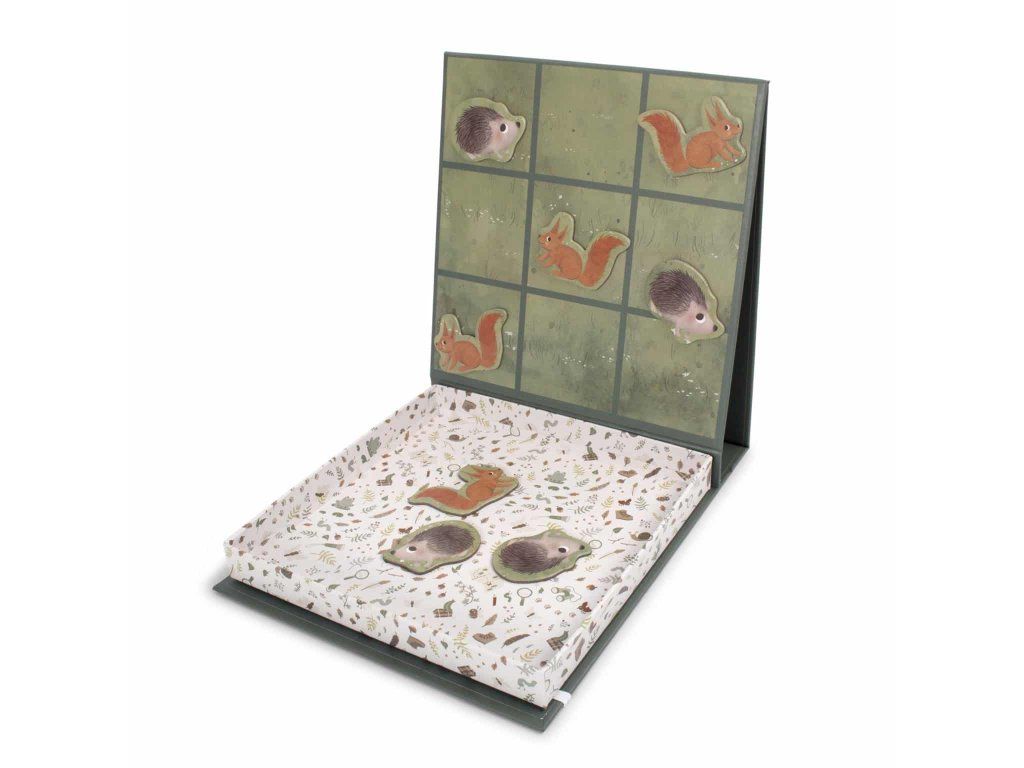 Kto by nemal rád hru Tic Tac Toe. Nadčasová taktická hra pre deti a dospelých ponúka skvelú zábavu doma aj na cestách. A vďaka peknej krabici s pripojenou magnetickou hracou doskou zostanú všetky komponenty na svojom mieste. Praktická magnetická hra s farebnými, ručne kreslenými veveričkami a ježkami ponúka zábavu bez obrazovky po náročnom dni. Táto hra je vhodná od troch rokov a zamiluje si ju celá rodina. Moje špeciálne vlastnosti:- Verzia skutočnej klasiky vhodná na cesty.