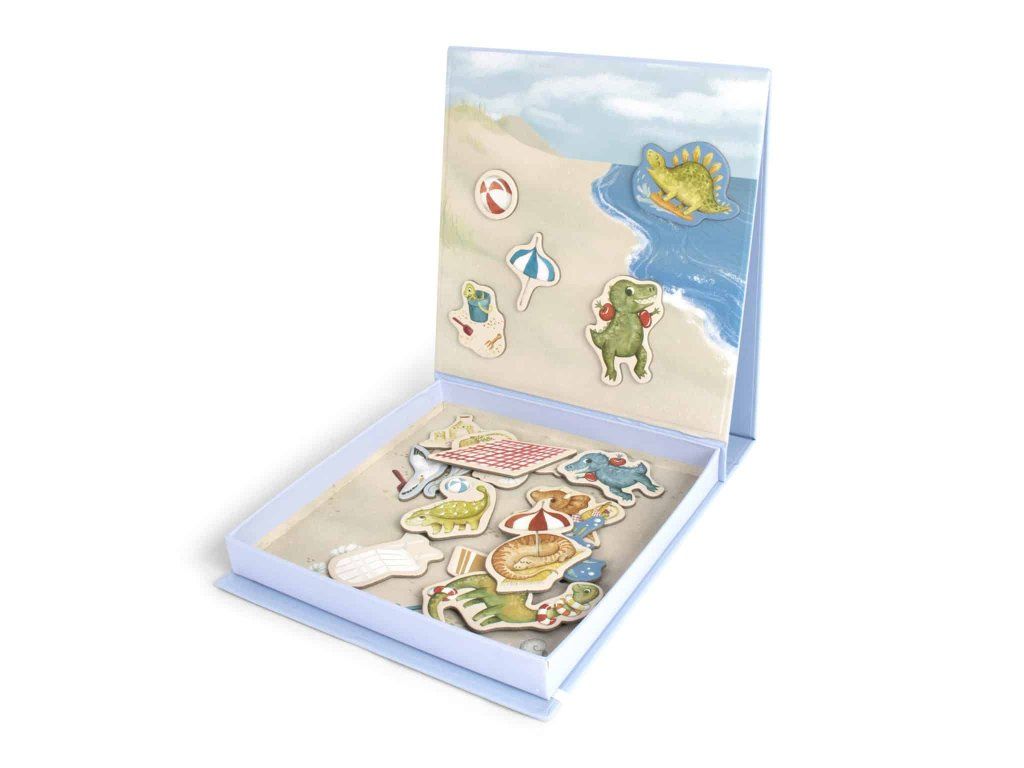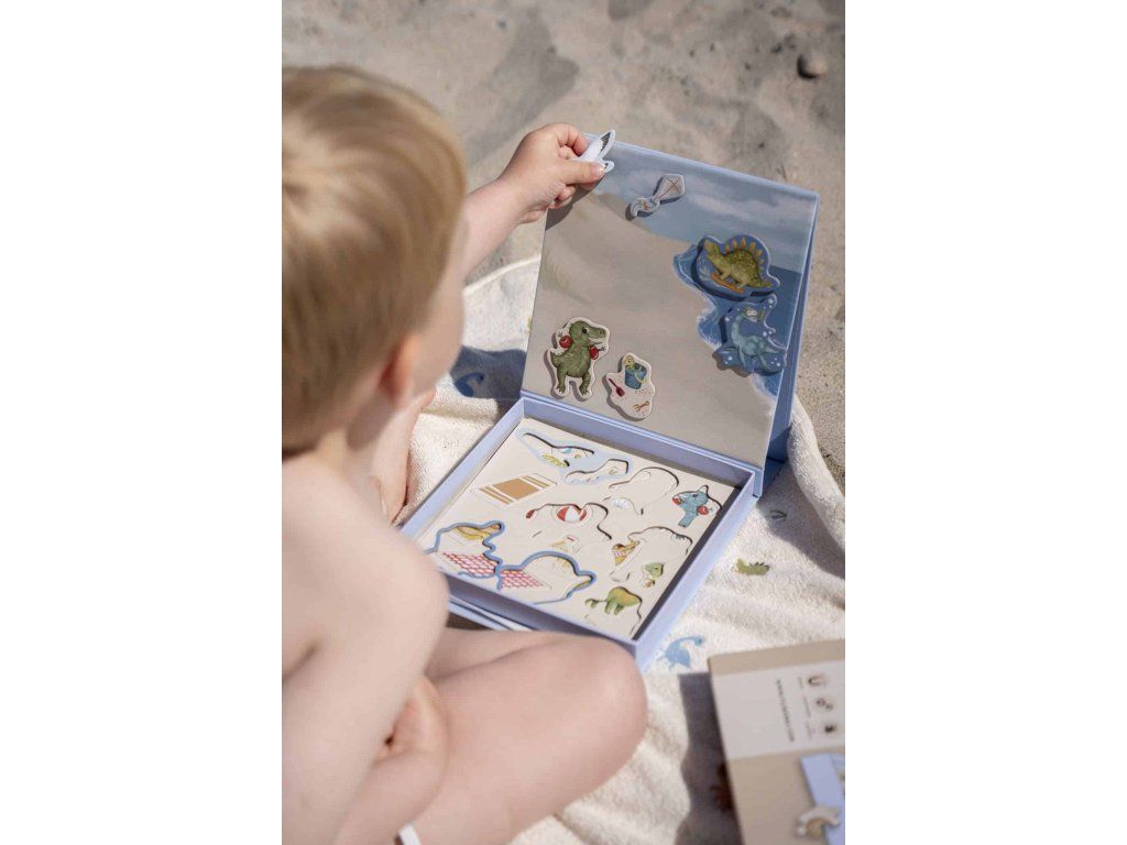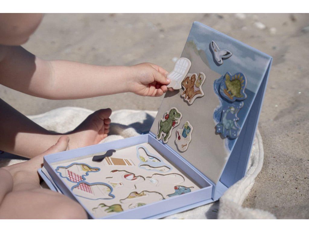 Poďme sa zabaviť na pláži s obrovskými dinosaurími spoluhráčmi! Magnetická hra inšpiruje vaše dieťa k hre plnej nápadov a dá sa ľahko vziať na cesty. Vďaka peknej krabičke s magnetickou tabuľou zostanú vaše kúsky na svojom mieste. Praktická magnetická hra s farebnými, ručne kreslenými dinosaurami trénuje jemnú motoriku vášho dieťaťa a pomáha upokojiť sa po náročnom dni. Táto hra je vhodná pre deti od troch rokov a bude ju milovať celá rodina. Moje špeciálne vlastnosti:- Pekná krabička s pripevnenou magnetickou tabuľou udrží dinosaury na mieste