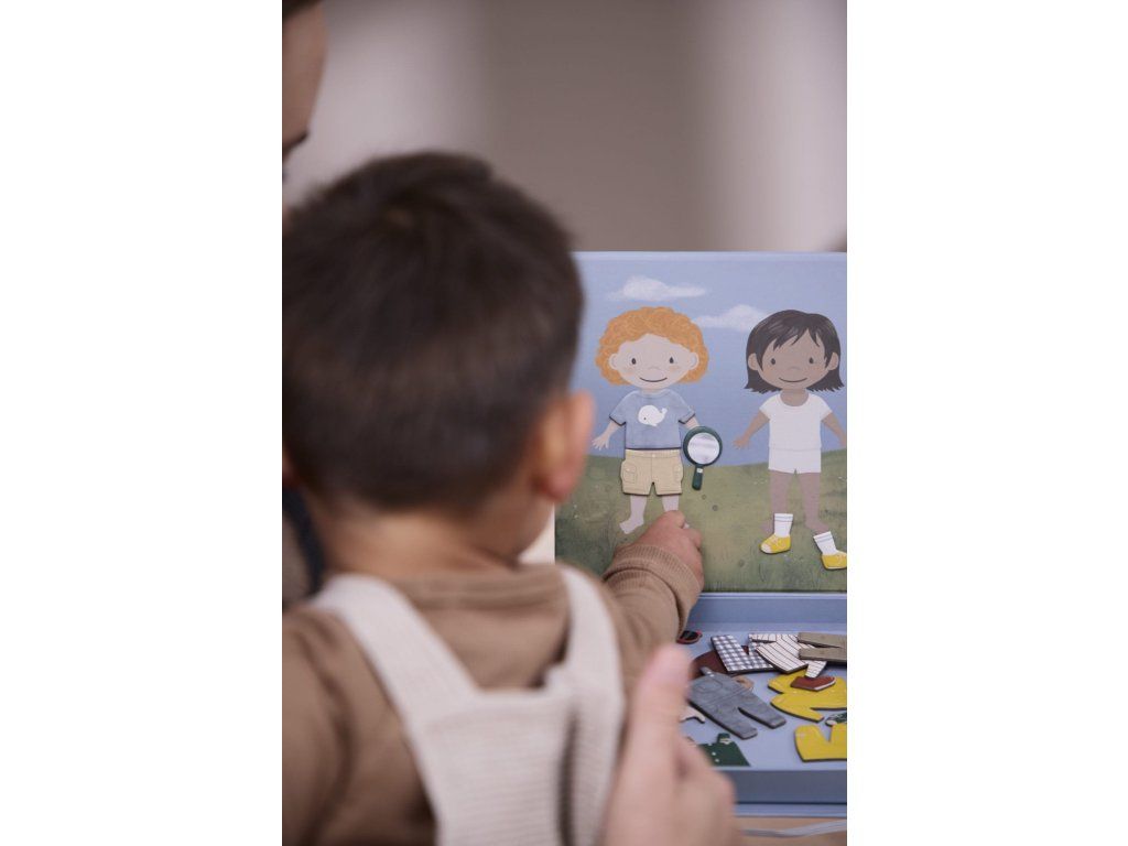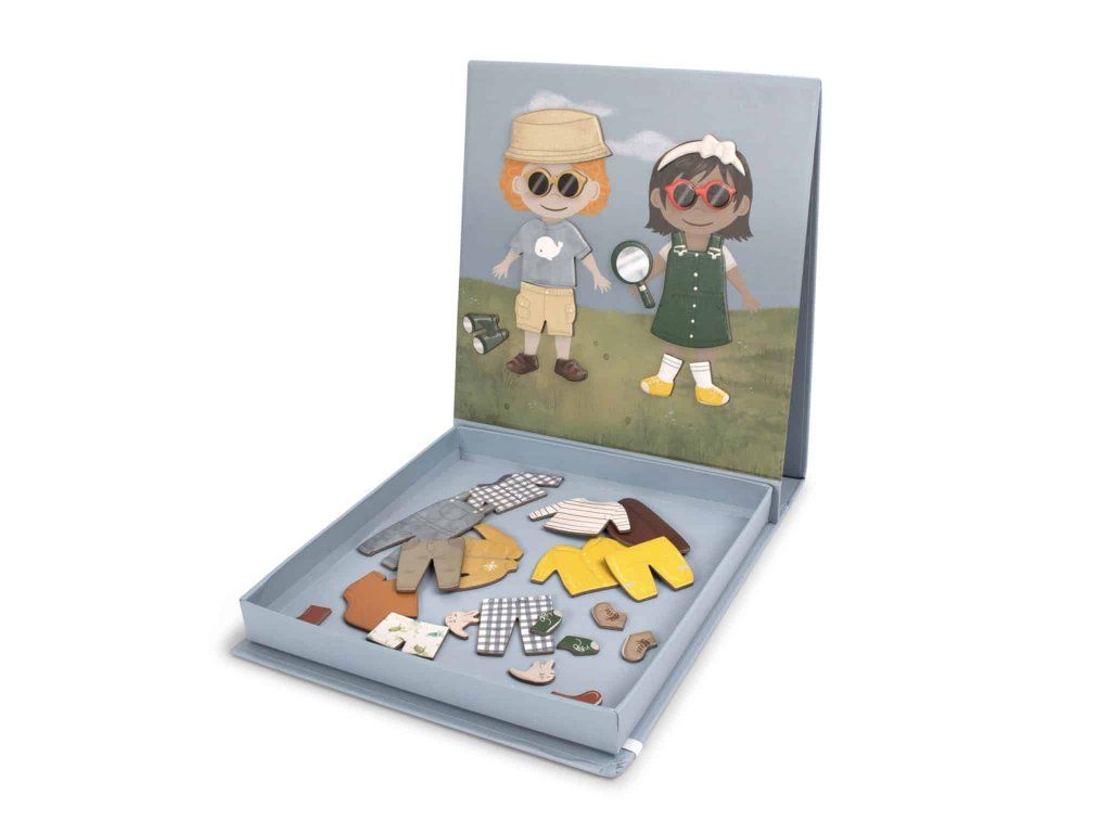 Skutočná klasika v novom šate! V tejto fantastickej magnetickej hre pomôžete dvom deťom pripraviť sa na ich dobrodružstvo. Dážď alebo slnko, vďaka množstvu krásneho oblečenia a doplnkov sú dobre vybavené na každú výpravu. Táto praktická magnetická hra obsahuje farebné, ručne kreslené bábiky na prezliekanie a množstvo doplnkov, ktoré poskytujú zábavu bez obrazovky a inšpirujúcu tvorivú hru. Vhodné pre deti od troch rokov, ideálne pre celú rodinu. Moje špeciálne vlastnosti:- Perfektná cestovateľská hra.
