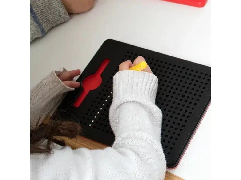 Vďaka tejto skvelej hre objavíš všetko, čo je tvoja predstavivosť pripravená vyjadriť ďaleko od obrazoviek. S kúzlom magnetickej ceruzky môžeš oživiť všetky svoje 2D výtvory na tejto magnetickej tabuli. Súčasťou je magnetické "pero" potrebné na kreslenie/písanie po podložke. Stimulujú predstavivosť a kreativitu. Rozvíjajú vizuálno-priestorovú oblasť písaním, kreslením a vytváraním vzorov. Loptičky majú bezpečnostný systém, ktorý ich udržiava v plnej ochrane na hracej ploche. Všetky časti sú vyrobené z NEtoxického plastu. Rozmer: 31x25,5x1cm Aké výhody získajú vaše deti s týmto exkluzívnym produktom Imanix?- Tieto magnetické hry podporujú zdravú hru a rozvoj zručností u detí, stimulujú ich myseľ a zvyšujú ich koncentráciu.