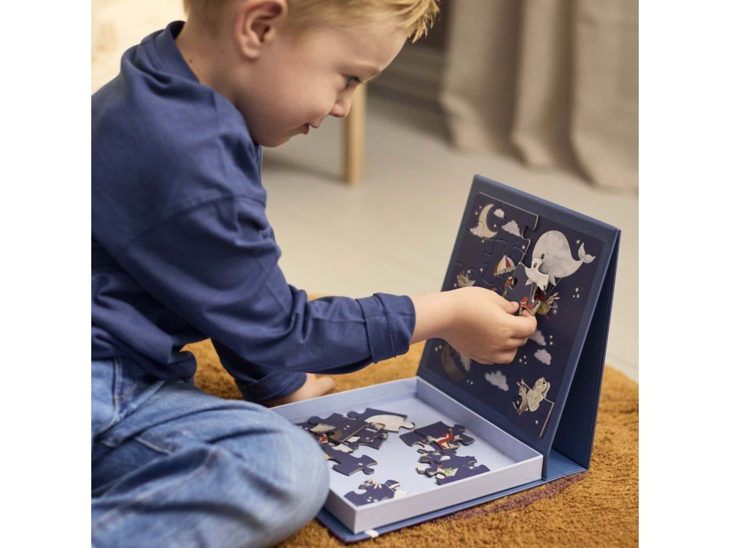 Prenosná krabička so zabudovanou magnetickou podložkou robí z puzzle ideálneho spoločníka na cesty, návštevy u kamarátov alebo pokojné chvíle doma. Puzzle je vhodné pre deti od 3 rokov a poskytuje hodiny zábavy. Zároveň pomáha upokojiť sa po rušnom dni.