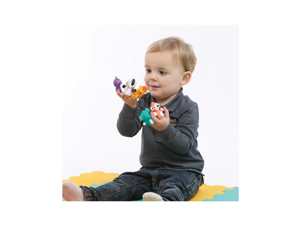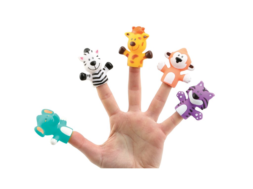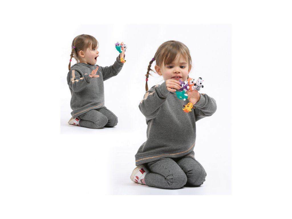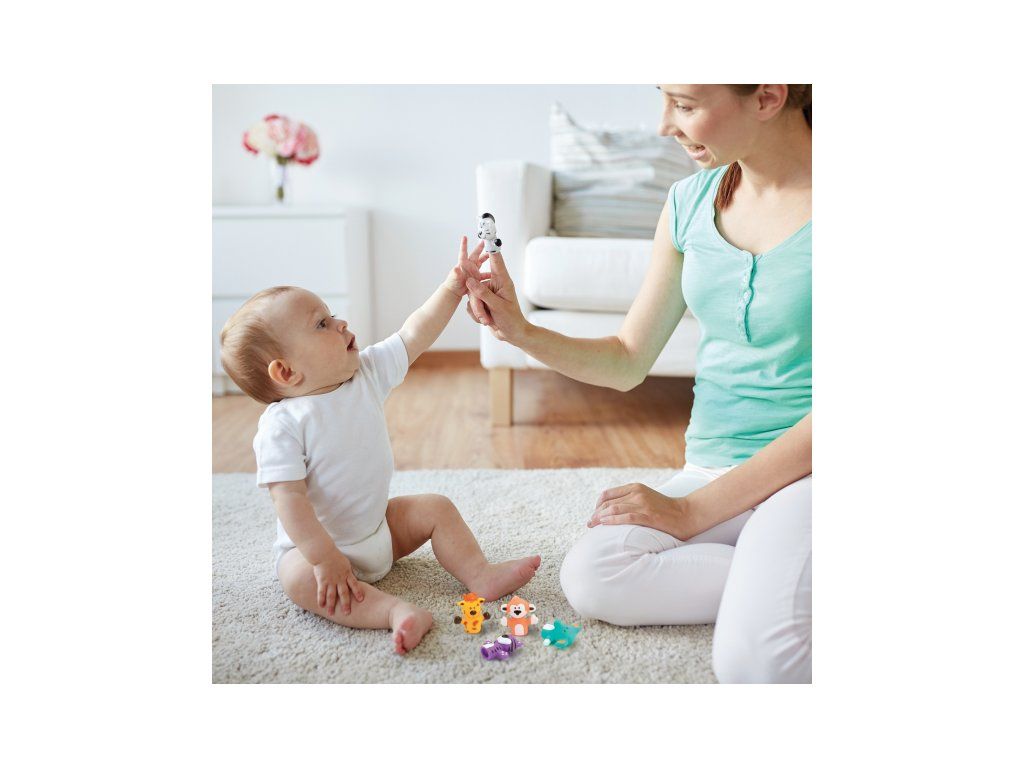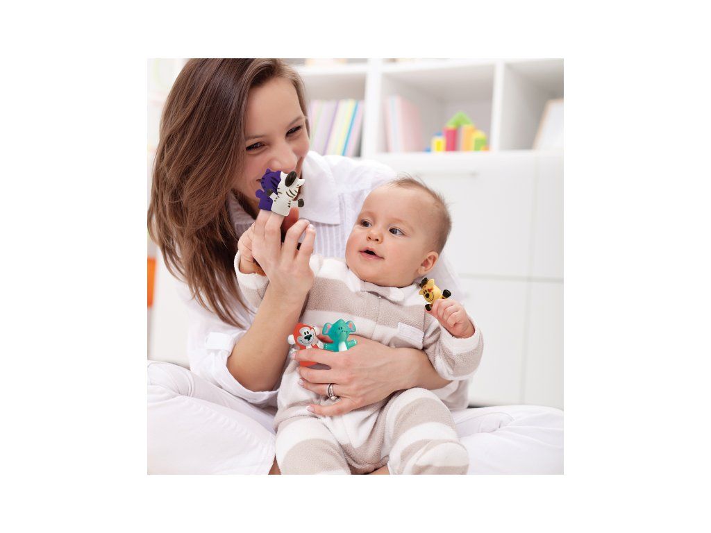 Sada originálnych prstových maňušiek ponúka skvelý spôsob, ako si užiť výnimočné chvíle s vašim dieťaťom, ako je čas kúpania alebo rozprávanie pred spaním. Vymýšľajte si spolu príbehy o piatich zvieracích kamarátoch a rozvíjajte tak zábavným spôsobom predstavivosť a slovnú zásobu dieťaťa. Najskôr sa naučí spoznávať farby a mená zvierat, v staršom veku si už maňušky nasadí na vlastné prsty a bude vymýšľať vlastné príbehy.