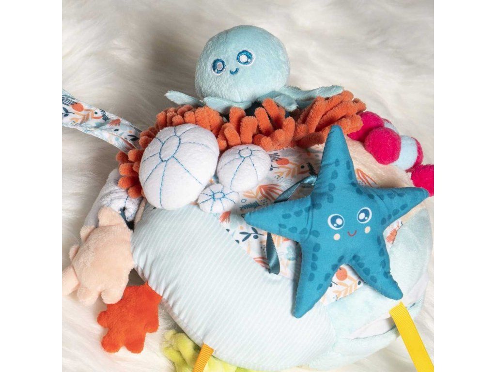 Senzorická stimulácia je jednou z najdôležitejších a najlepších vecí pre vaše dieťa. Bude sa skvele baviť pri pohľade, dotyku, hryzení alebo počúvaní hrkajúcich zvukov tohto mäkkého koralového útesu. Zatrasením hrkálky v tvare chobotnice môžete začať odhaľovať tajomstvá útesu. Nechajte svoje dieťa objavovať tajomstvá oceánskych hlbín už od útleho veku!