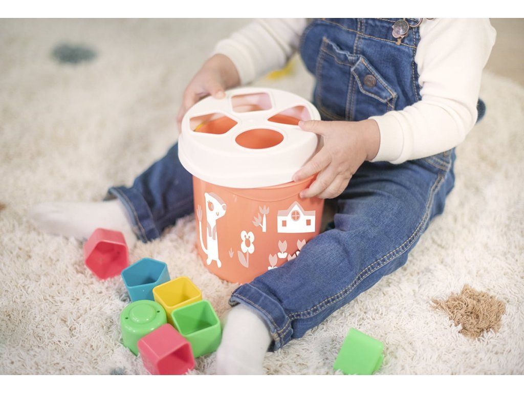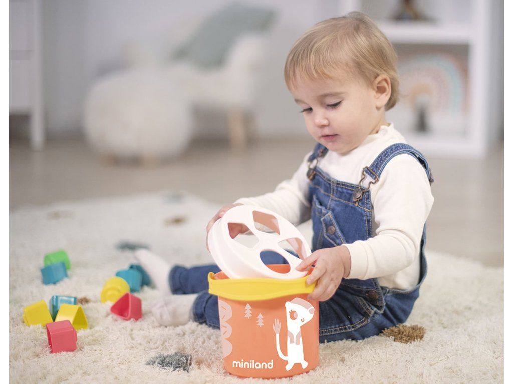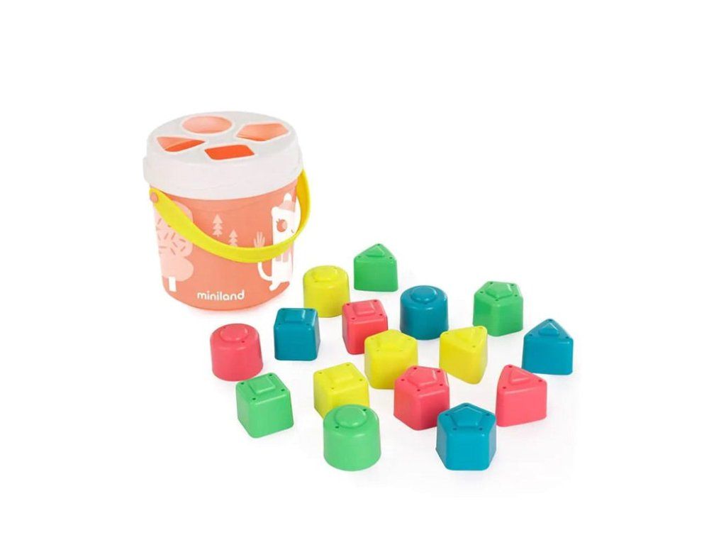 Miniland Vedierko s blokmi na triedenie tvarov, lososové