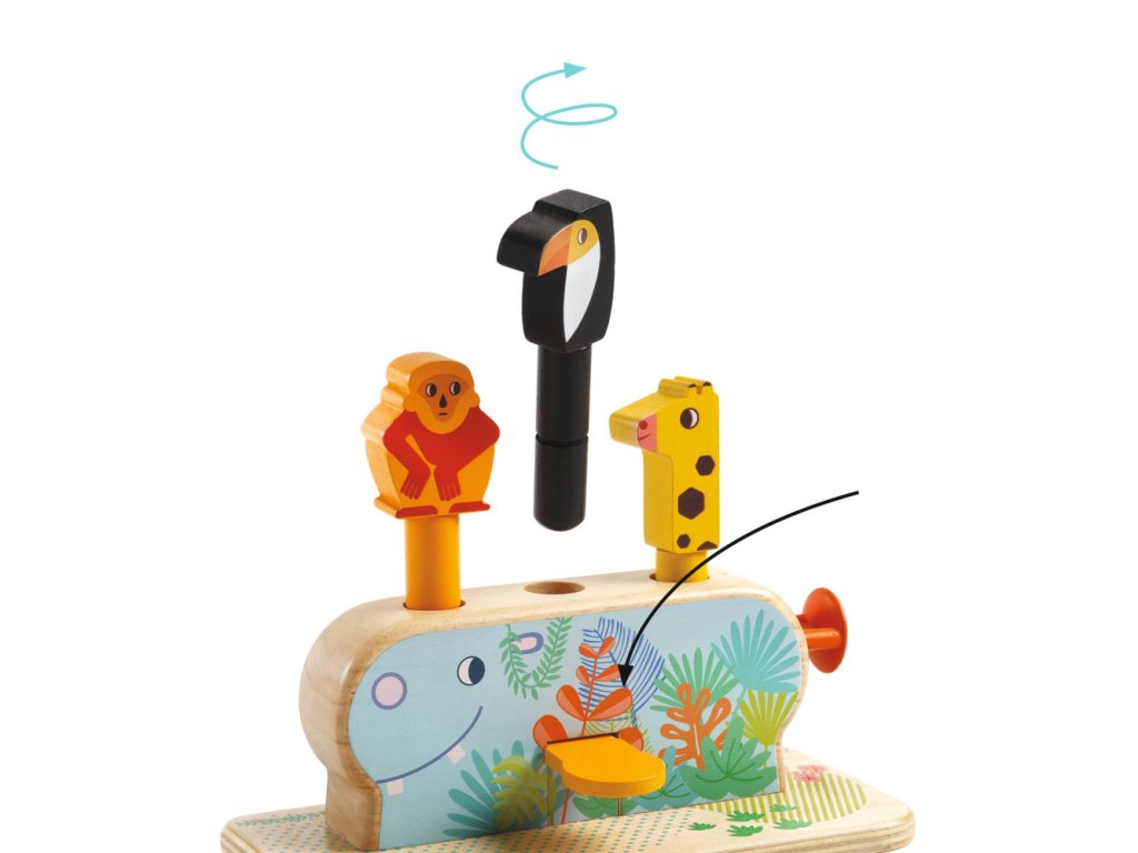 Multi Pop Drevená motorická hračka s 3 vyskakovacími zvieratkamiZábavná drevená hračka pre malé ručičkyPonorte sa do sveta zábavy a objavovania s drevenou motorickou hračkou Multi Pop od Djeco. Táto hravá sada obsahuje 3 roztomilé zvieratká – opicu, tukana a žirafu – ktoré vyskočia z chrbta veselého hrošíka, keď deti stlačia páčky, tlačidlá alebo posunú mechanizmus. Tvorivá hra podporuje jemnú motoriku, koordináciu oko–ruka a prvky logického myslenia, pričom deti zažijú radosť z interaktívnej hry a učenia sa cez zábavu. Hračka je vyrobená z kvalitného dreva s ekologickým certifikátom FSC®, takže je bezpečná pre deti a šetrná k prírode. Multi Pop je ideálny spoločník pre batoľatá, ktoré rady skúmajú, objavujú a hrajú sa.Dodatočné parametre