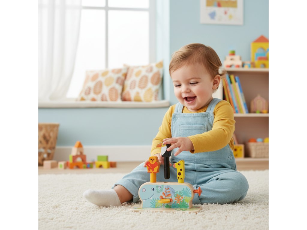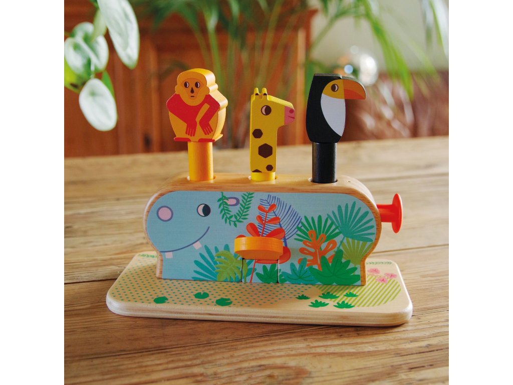 Drevená motorická hračka s 3 vyskakovacími zvieratkami Multi PopZábavná drevená hračka pre malé ručičkyPonorte sa do sveta zábavy a objavovania s drevenou motorickou hračkou Multi Pop od Djeco. Táto hravá sada obsahuje 3 roztomilé zvieratká – opicu, tukana a žirafu – ktoré vyskočia z chrbta veselého hrošíka, keď deti stlačia páčky, tlačidlá alebo posunú mechanizmus. Tvorivá hra podporuje jemnú motoriku, koordináciu oko–ruka a prvky logického myslenia, pričom deti zažijú radosť z interaktívnej hry a učenia sa cez zábavu. Hračka je vyrobená z kvalitného dreva s ekologickým certifikátom FSC®, takže je bezpečná pre deti a šetrná k prírode. Multi Pop je ideálny spoločník pre batoľatá, ktoré rady skúmajú, objavujú a hrajú sa.Dodatočné parametre
