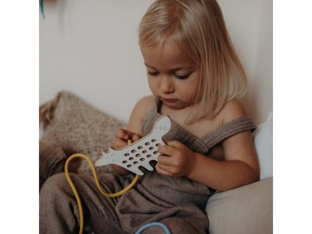 - drevená provliekacia hračka pre rozvoj kreativity, fantázie a jemnej motoriky