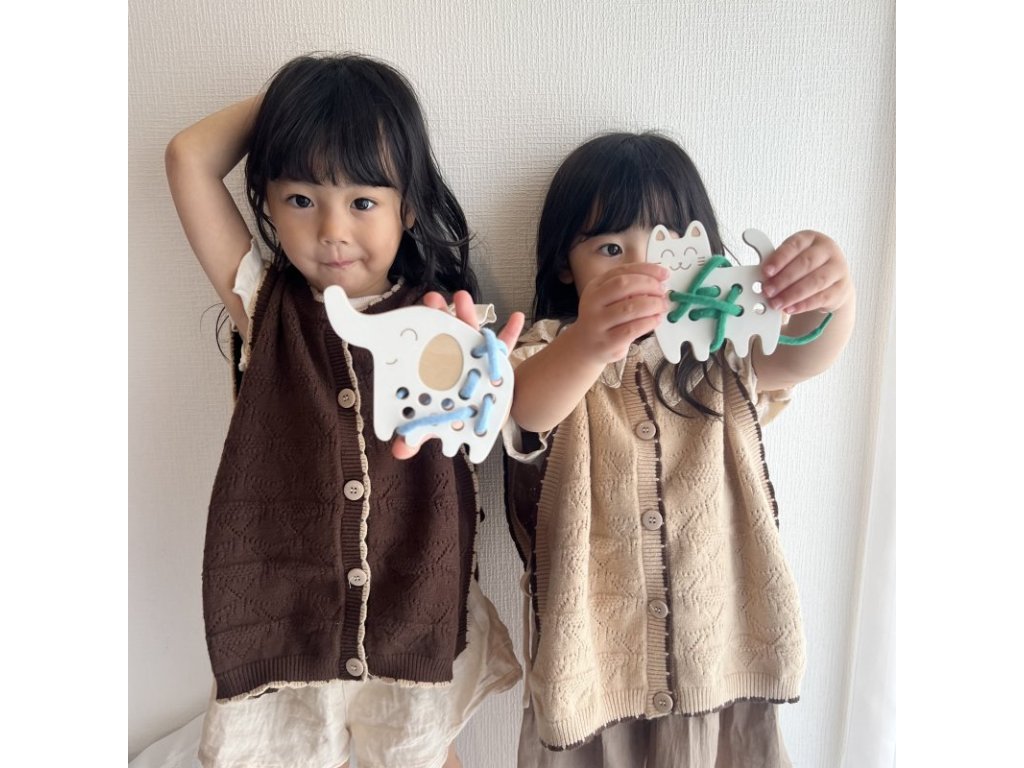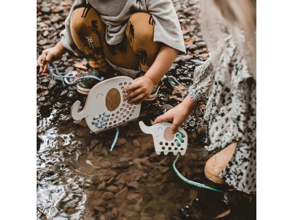 - drevená provliekacia hračka pre rozvoj kreativity, fantázie a jemnej motoriky