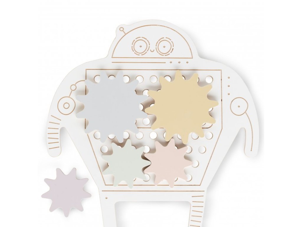 - sada obsahuje 1 veľkého robota a 5 ozubených farebných koliesok, ktoré treba správne umiestniť