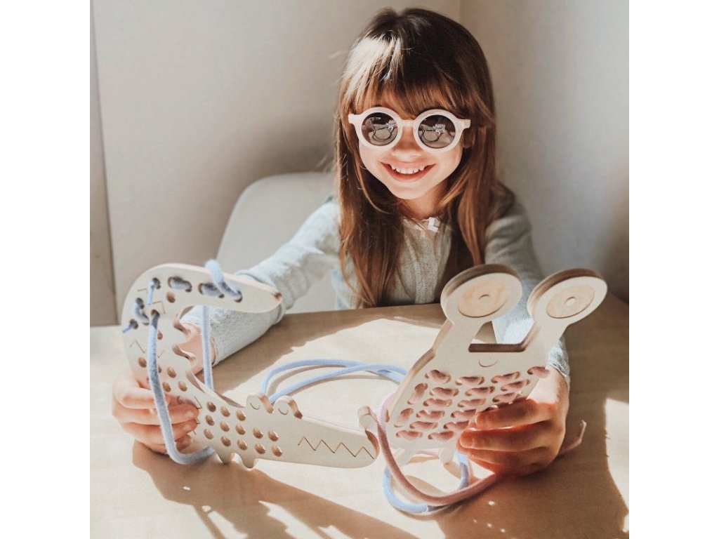 - drevená prevliekacia hračka pre rozvoj kreativity, fantázie a jemnej motoriky