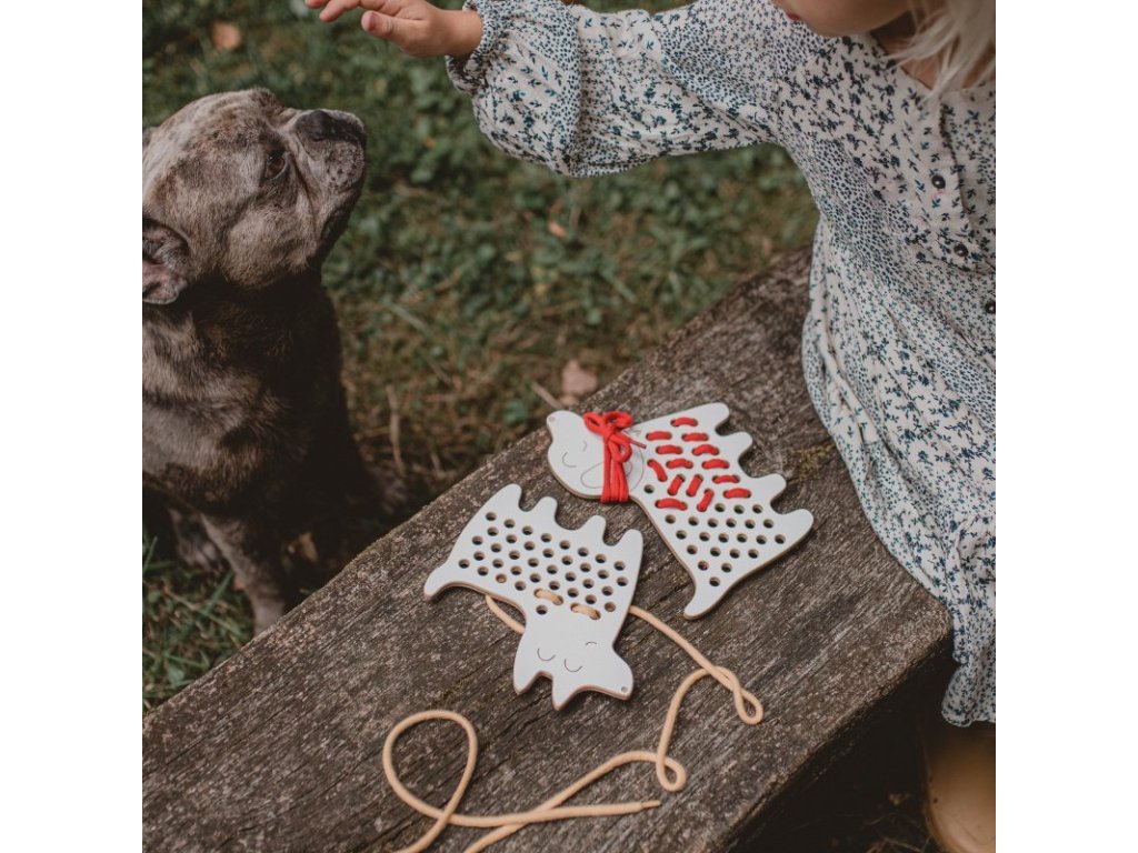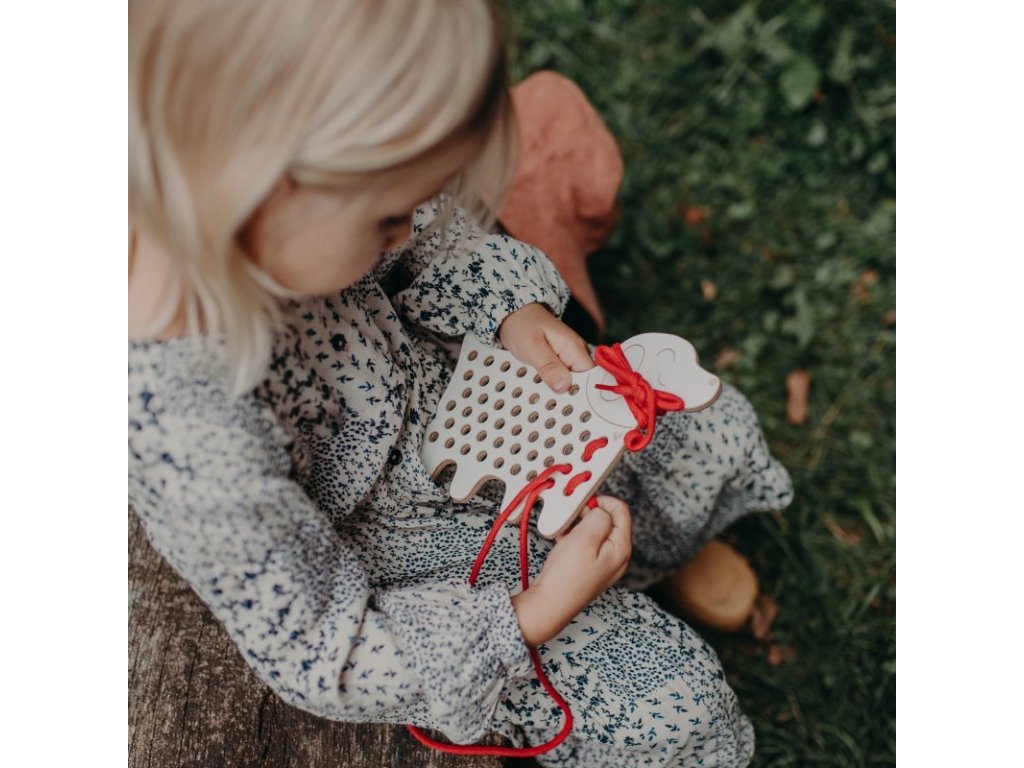 - drevená prevliekacia hračka pre rozvoj kreativity, fantázie a jemnej motoriky