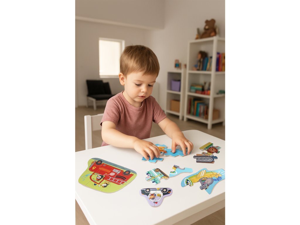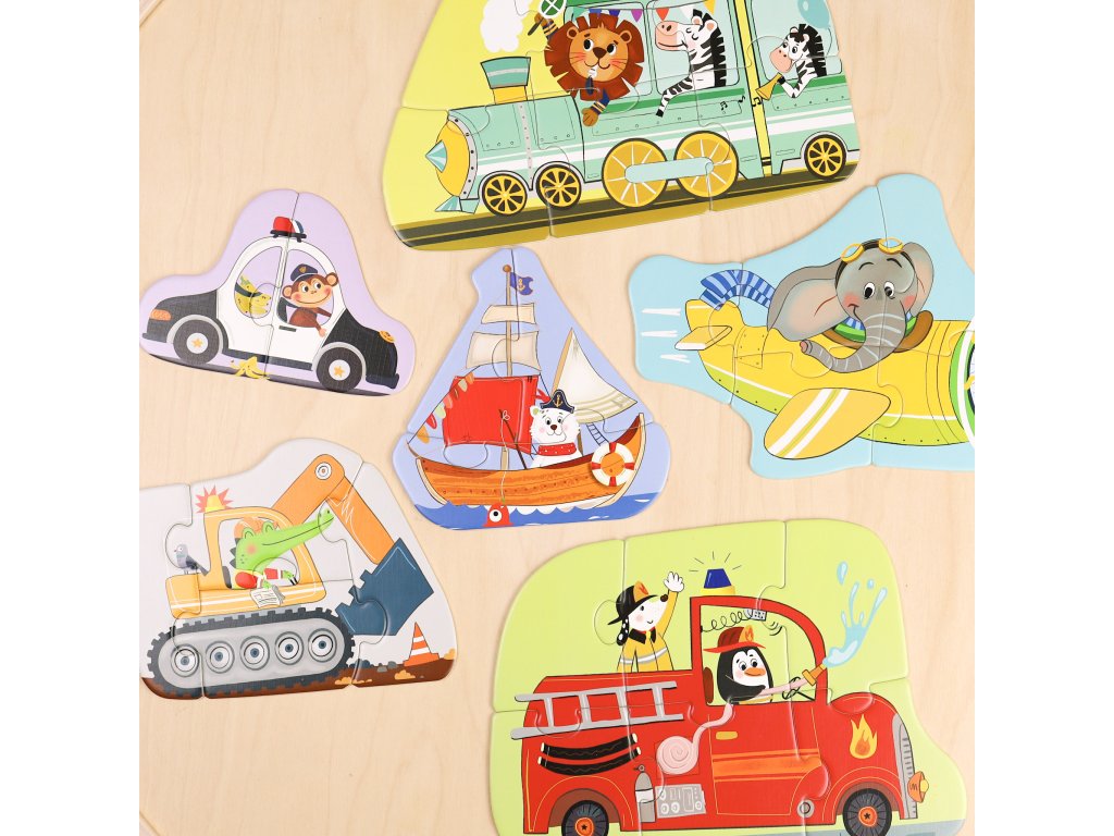 Prvé puzzle Doprava 6v1Svet dopravy s veselými zvieratkami – ideálne prvé puzzle pre malé rúčky!Objavte Prvé puzzle pre deti Doprava 6v1 – hravý a vzdelávací set, ktorý pomáha rozvíjať detskú zručnosť, logiku a koncentráciu. Balenie obsahuje až 6 rôznych puzzle - 6 úrovní obtiažnosti, od 2 až po 6 dielikov, takže sú ideálne aj ako prvé puzzle pre najmenších.Deti si pri skladaní užijú veľa zábavy s veselými zvieratkami, ktoré riadia policajné auto, loď, báger, lietadlo, hasičské auto a vlak. Každé puzzle má farebne odlíšenú zadnú stranu, čo deťom uľahčuje triedenie dielikov a podporuje samostatné skladanie.Vhodné pre deti už od 2 rokov, ktoré sa učia spájať tvary a obrázky prvýkrát.6 puzzle v jednom balení – radosť, učenie a rozvoj v každom dielikuPodporuje jemnú motoriku, koordináciu oko–ruka a logické myslenieVyrobené z hrubého, tvrdeného kartónu – odolné a bezpečné pre malé detiKvalitné ilustrácie so zvieratkami v sýtych farbách, ktoré deti zaujmú na prvý pohľadErgonomické dieliky, ktoré sa ľahko chytajú aj najmenším rúčkamSkvelý tip na darček pre malých milovníkov dopravných prostriedkovDodatočné parametre