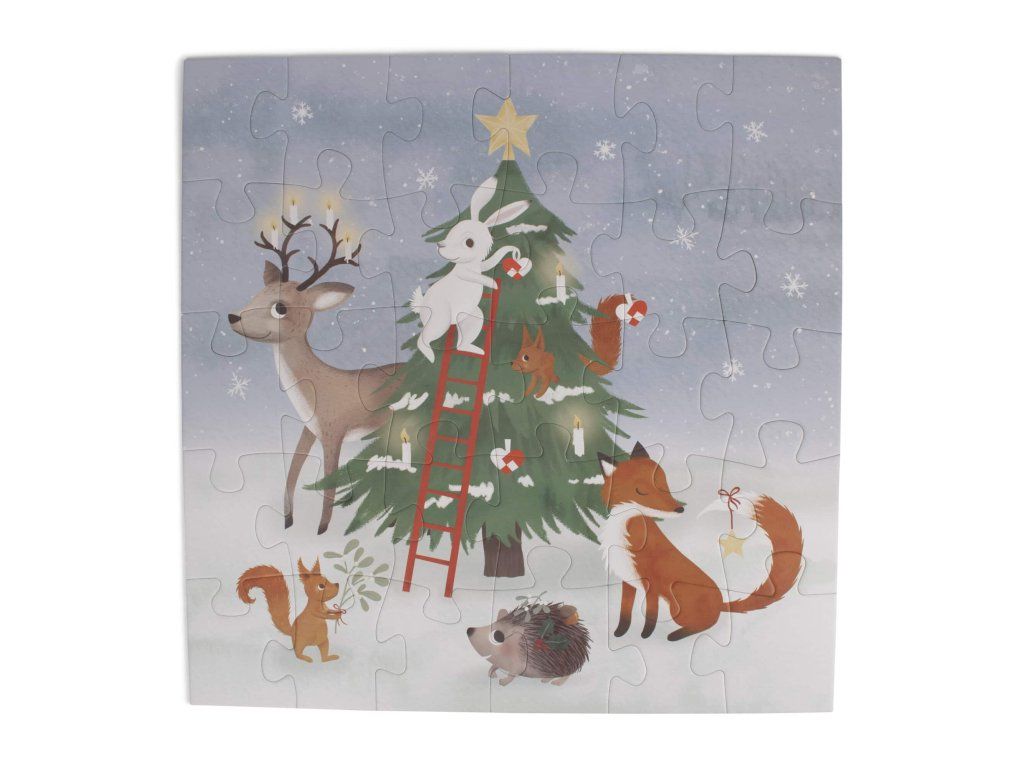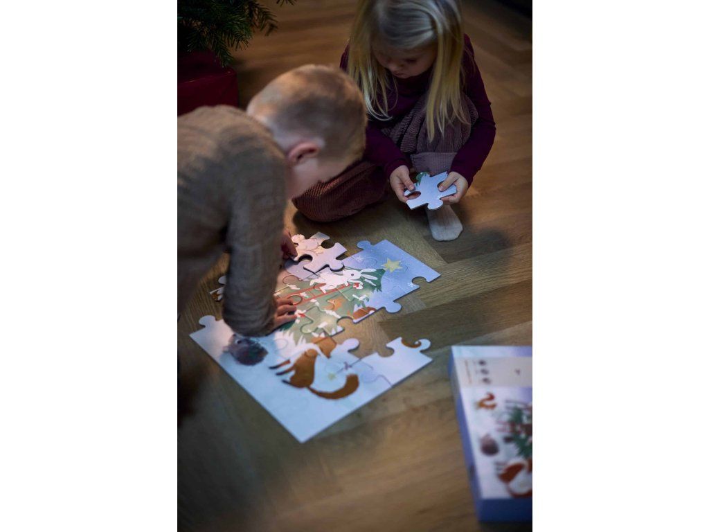 Toto sviatočné puzzle sa skladá z 30 veľkých dielikov, ktoré sa deťom ľahko držia a skladajú. Navrhnuté na posilnenie jemnej motoriky a podporu sústredenia, spája zábavu s učením. Puzzle je uložené v krásne navrhnutej krabičke, ktorá slúži aj ako dekoratívny doplnok do detskej izby, keď sa práve nepoužíva.
