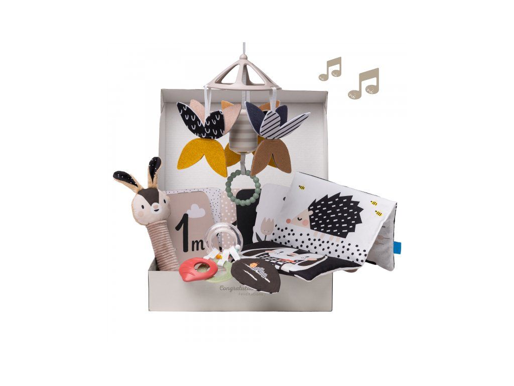 Darčekový box obsahuje 10 vývojových hračiek navrhnutých na posilnenie zmyslového, motorického a kognitívneho rozvoja vášho dieťaťa od prvých dní života: