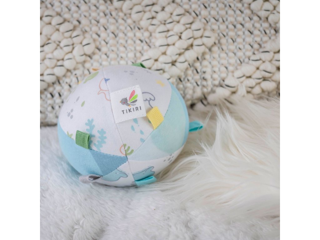 Rozvojová loptička Ocean Activity Ball z kolekcie Ocean Buddies je dekorovaná známymi kamarátmi z hlbín mora. Vo vnútri má jemnú hrkálku, takže rýchlo upúta pozornosť najmenších a malé farebné štítky prišité po celom povrchu lopty zabavia drobné pršteky a precvičia jemnú motoriku. Vhodné pre deti od narodenia. Testované podľa EU noriem. Vyrobené na Srí Lanke vo fair trade podmienkach. Materiál – 100% certifikovaná organická bavlna. Výplň – 100% recyklovaný polyester. Priemer loptičky 10 cm. Údržba: Pranie na 40°C v práčke, bežný program. Nesušiť v sušičke. Nežehliť. Nečistiť chemicky. Všetky Tikiri produkty sú vyrobené s ohľadom na životné prostredie. Vieme, že rešpektovať životné prostredie znamená rešpektovať celú našu planétu, ktorú tak chránime pre ďalšie generácie.Dodatočné parametre