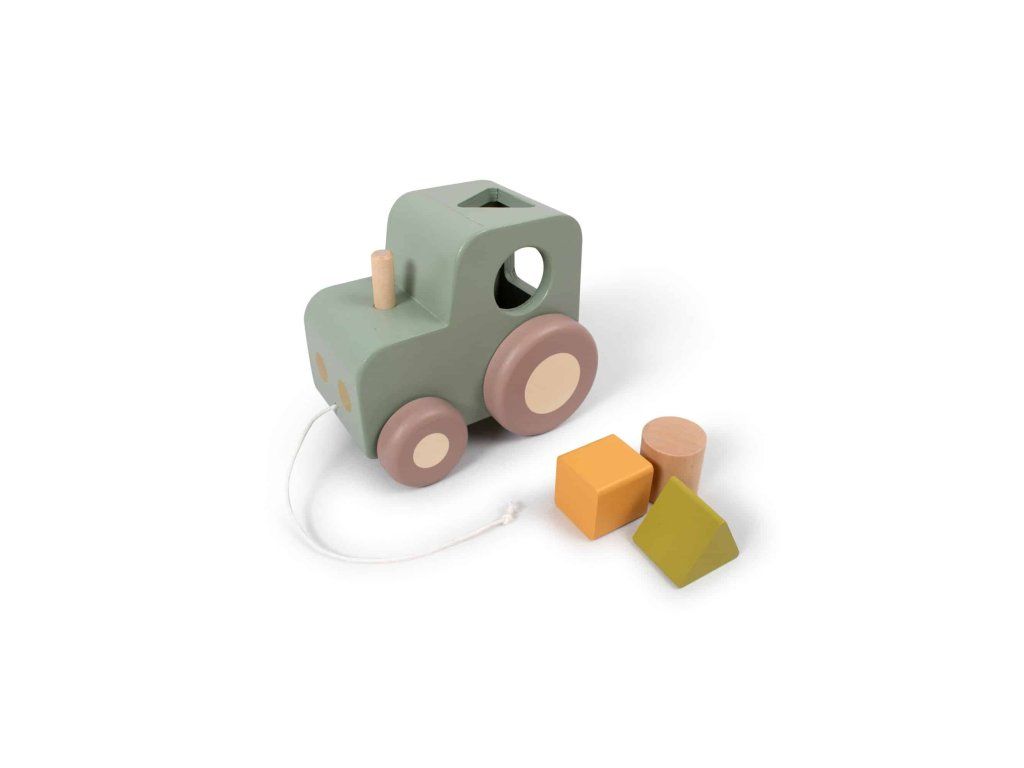 Dve najobľúbenejšie detské hračky v jednom: traktor na ťahanie a zároveň vkladačka tvarov. Tento malý traktor vás bude rád nasledovať po dome a vkladačka tvarov určite zamestná malé ručičky na nejaký čas. Triedič tvarov je skutočnou klasikou, ktorá by nemala chýbať v žiadnej detskej izbe, pretože zlepšuje koordináciu ruka-oko, jemnú motoriku a zručnosti pri riešení problémov – a to všetko pri zábave. Ťahacia hračka povzbudzuje dieťa k chôdzi a pomáha rozvíjať motorické zručnosti, pretože dieťa potrebuje uchopiť šnúrku a súčasne ťahať. Ťahací traktor je vyrobený z MDF schváleného FSC a dá sa ľahko utrieť vlhkou handričkou. Vhodné pre deti od 12 mesiacov. Rozmer 12x14x16cm. Hračka spĺňa normu EN71.Dodatočné parametre