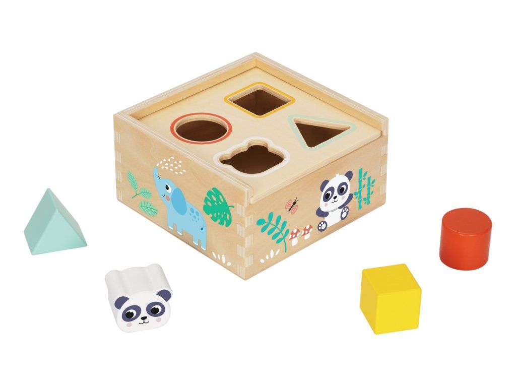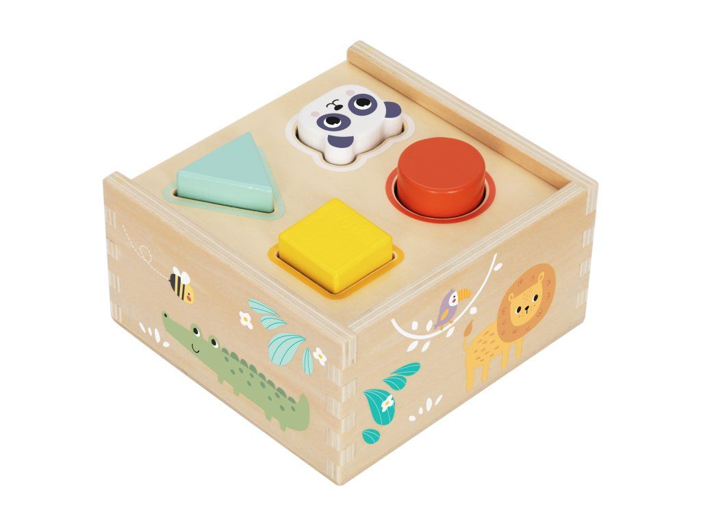 Vkladačka Tvary Panda 4 otvory, 4 rôzne tvary Drevená vkladačka s pastelovo farebnými geometrickými tvarmi od Tooky Toy je skvelá aktivity hračka pre vaše deti. Vkladačka má 4 otvory, do ktorých treba vložiť 4 rôzne drevené tvary. Deťom chvíľku zaberie, než ich všetky vložia do správneho otvoru. Keď je všetko hotové, jednoducho odklopia veko na vkladačke, vyberú tvary a môžu začať odznova.Vkladačka Tvary podporuje rozvoj detí Hračka rozvíja jemnú motoriku, logické myslenie, koncentráciu či koordináciu ruka-oko. Batoľa sa ale tiež naučí rozpoznávať a pomenovávať tvary a farby. Drevené hračky pre deti od Tooky Toy sú vyrobené z pevného, dobre opracovaného dreva a netoxických farieb. Pre deti sú bezpečné. Hračka je vhodná pre deti od 12 mesiacov.Dodatočné parametre