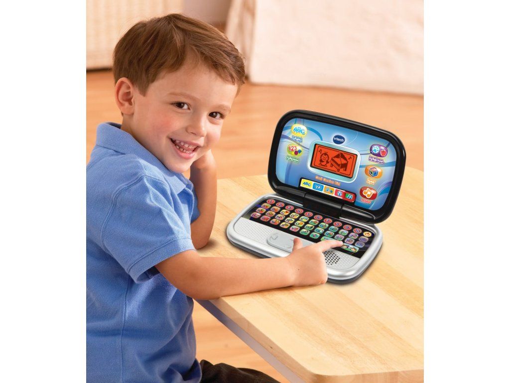 Vtech Prvý notebook je sklopný detský počítač imitujúci klasický notebook pre dospelých. Súčasťou notebooku je viac ako 20 výukových a zábavných aktivít. Vtech Prvý notebook okrem iného naučí deti poznávať 26 základných písmen slovenskej abecedy, čísla, tvary i počítať. Naučí poznávať veľká tak i malé písmena vrátane použití v slovách a ich výslovnosti. V ďalších variantoch hry naučí notebook deti všetky čísla do desiati, učí ich porovnávať rovnako aj počítanie. Deti nabáda k aktivite napríklad pri hľadaní a počítaní rôznych tvarov, rýb alebo ovocia a zeleniny. V neposlednom rade budú deti spoznávať stopy zvierat, a aké zvuky zvieratá vydávajú Všetky získané vedomosti zhŕňajú pútavým spôsobom rôzne testy. Aká by to bola hračka, keby tiež neobsahovala zábavné hry. Hry sú nielen zábavné, ale dieťa sa ďalej rozvíja v logickom myslení, úsudku, postrehu alebo napríklad v poznávaní hudobných nástrojov a hudobných štýlov. Vtipný tučniak naučí tiež deti presne rozoznávať pojmy ako je ""pred, pod, nad, vedľa, za"" Všetka činnosť notebooku sa ovláda pomocou dotykovej klávesnice a dotykovým ovládačom (touchpadom) so smerovými šípkami. Pokyny pre hráča sa zobrazujú na displeji s uhlopriečkou 8 cm. Okrem stoviek slov, fráz a piesní obsahuje aj viac ako 30 hudobných ukážok a melódií. Názvy hlavných hier a aktivít: Poznávame písmená Poradie písmen v abecede Písmenkový kvíz Chýbajúce písmeno Kde je tučniak Poznávame čísla Poznávame tvary Trochu iné počítanie Číselný kvíz Zvuky a stopy zvierat Poznávame zvieratá Ovocie a zelenina Opráv múr Chytanie rýb Cesta domovDodatočné parametre