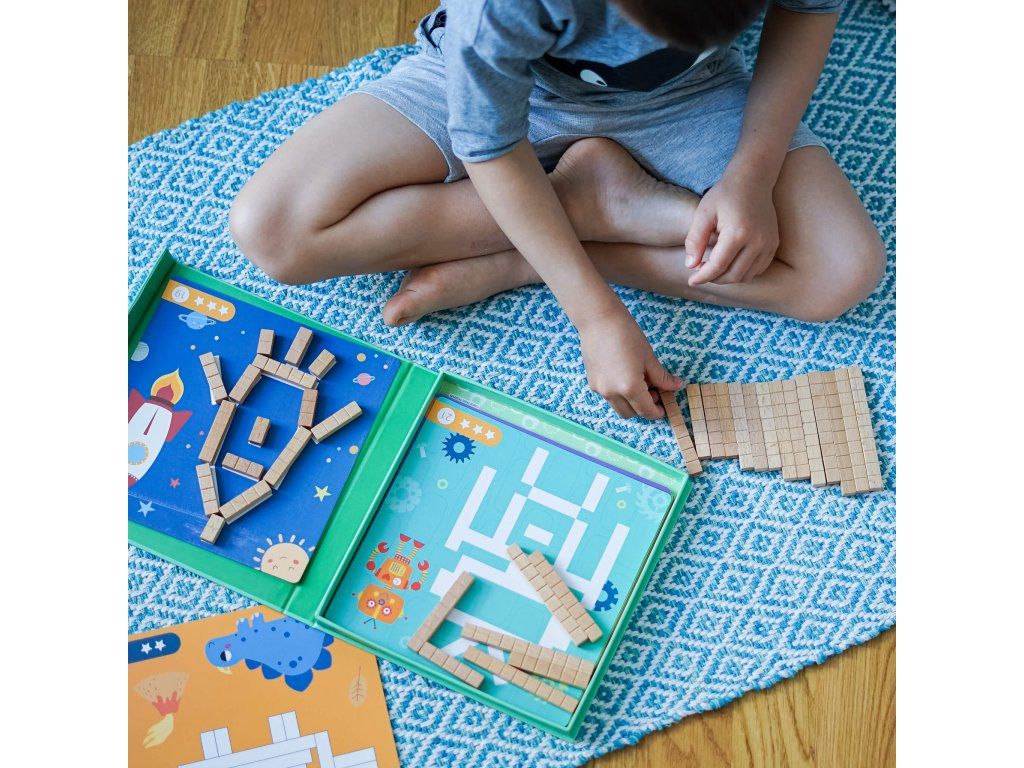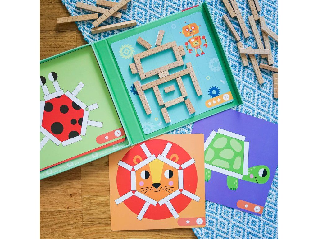 Zábavné počítanie Tvoríme s obdĺžnikmi! Kreatívny box obsahuje 12 obojstranných kariet s obrázkami. Vďaka 36 dreveným magnetickým obdĺžnikom je možné obrázky dotvoriť. Obdĺžniky sú rôzne dlhé a u každého je naznačené z koľkých dielikov sa skladá. Vďaka magnetickému boxu bude obrázok aj magnetky držať pevne na mieste, kým ho dieťatko nedotvorí.Deti sa učia porovnávať dĺžky Zisťujú, aká dlhá magnetka padne na určité miesto. Učia sa základné počty, cvičia si jemnú motoriku, koordináciu oko-ruka a v neposlednom rade logické myslenie a trpezlivosť. Celá hra deti motivuje k učeniu. Je vyrobená z kvalitných materiálov s ohľadom na životné prostredie a bezpečnosť dieťaťa.Dodatočné parametre