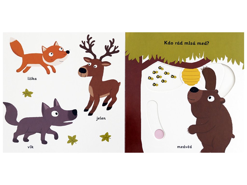 konári visiaca opica. V knihe tiež detičky nájdu jeleňa, vlka, líšku a
