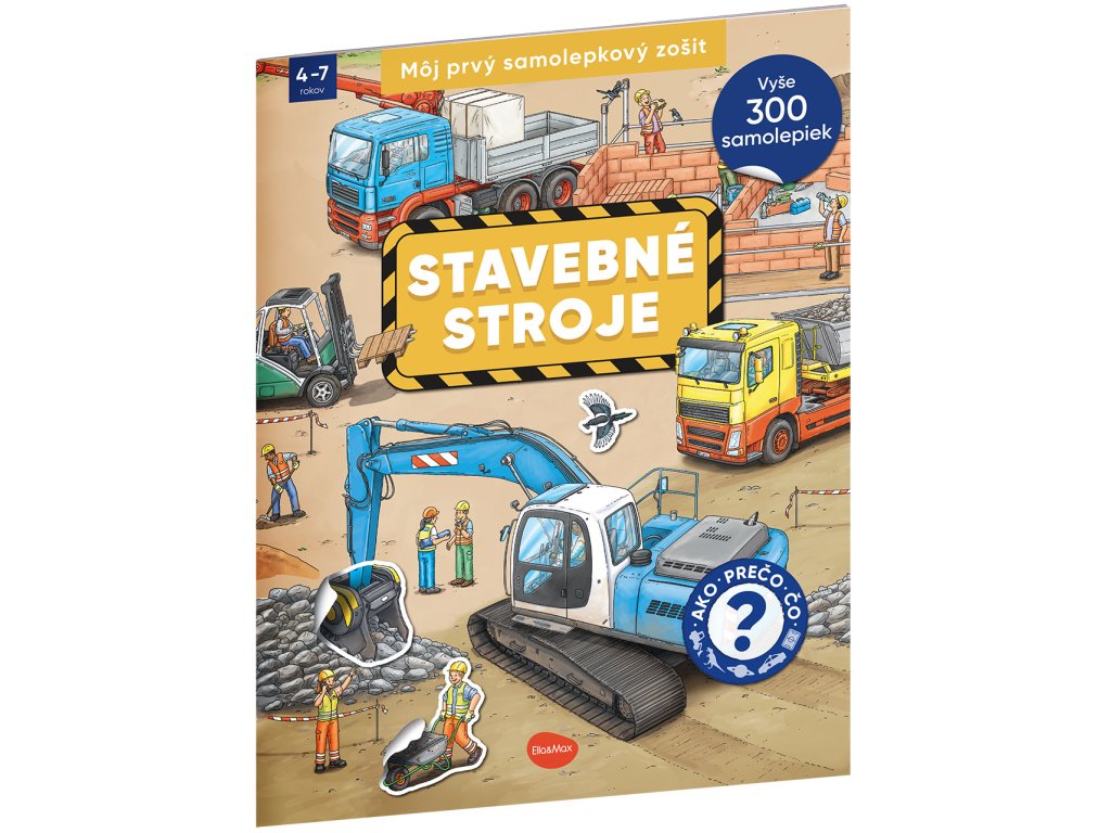 Môj prvý samolepkový zošit Stavebné stroje Ako funguje žeriav? Prečo má bager lyžicu? Odpovede nájdeš tu! Bagre, miešačky, žeriavy a ďalšie fascinujúce stroje! Môj prvý samolepkový zošit – Stavebné stroje je zábavno-náučná knižka pre deti, ktorá odpovedá na všetky zvedavé otázky o svete stavieb a veľkých strojov: Ako funguje bager? Prečo sa mieša betón? Čo robí žeriavnik? Každá dvojstrana prináša množstvo zaujímavostí, krásnych ilustrácií a viac ako 300 samolepiek, ktoré deti použijú na dotváranie scén a plnenie úloh. Zošit rozvíja logiku, jemnú motoriku a záujem o techniku – a keď sa niekde zaseknú, pomôže im malá nápoveď na konci.Dodatočné parametre
