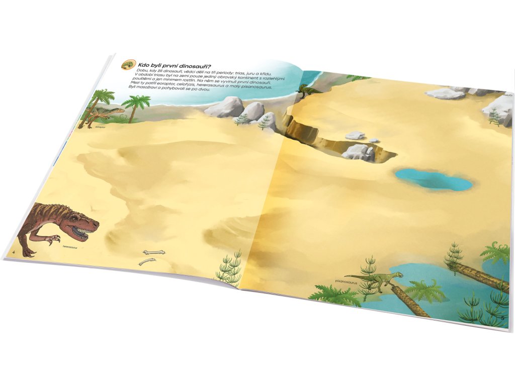 Môj prvý samolepkový zošit Dinosaury Objav prehistorický svet! Vydaj sa na dobrodružnú výpravu do doby dinosaurov! Môj prvý samolepkový zošit – Dinosaury je náučná a hravá knižka pre deti od 4 do 7 rokov, ktorá odpovedá na tie najzvedavejšie otázky o dinosauroch: Ako žili? Čím sa živili? Prečo vyhynuli? Každá dvojstrana ponúka zaujímavé informácie, krásne ilustrácie a viac než 300 samolepiek, ktoré deti využijú na dotváranie scén a plnenie úloh. Zošit rozvíja kreativitu, jemnú motoriku aj záujem o vedu – a ak niečo nepôjde, na konci ich čaká nápoveda.Dodatočné parametre
