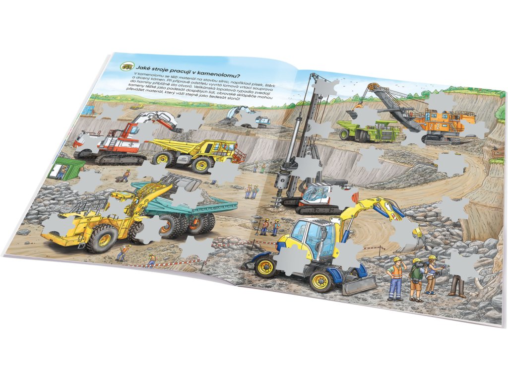 Môj prvý samolepkový zošit Stavebné stroje Ako funguje žeriav? Prečo má bager lyžicu? Odpovede nájdeš tu! Bagre, miešačky, žeriavy a ďalšie fascinujúce stroje! Môj prvý samolepkový zošit – Stavebné stroje je zábavno-náučná knižka pre deti, ktorá odpovedá na všetky zvedavé otázky o svete stavieb a veľkých strojov: Ako funguje bager? Prečo sa mieša betón? Čo robí žeriavnik? Každá dvojstrana prináša množstvo zaujímavostí, krásnych ilustrácií a viac ako 300 samolepiek, ktoré deti použijú na dotváranie scén a plnenie úloh. Zošit rozvíja logiku, jemnú motoriku a záujem o techniku – a keď sa niekde zaseknú, pomôže im malá nápoveď na konci.Dodatočné parametre