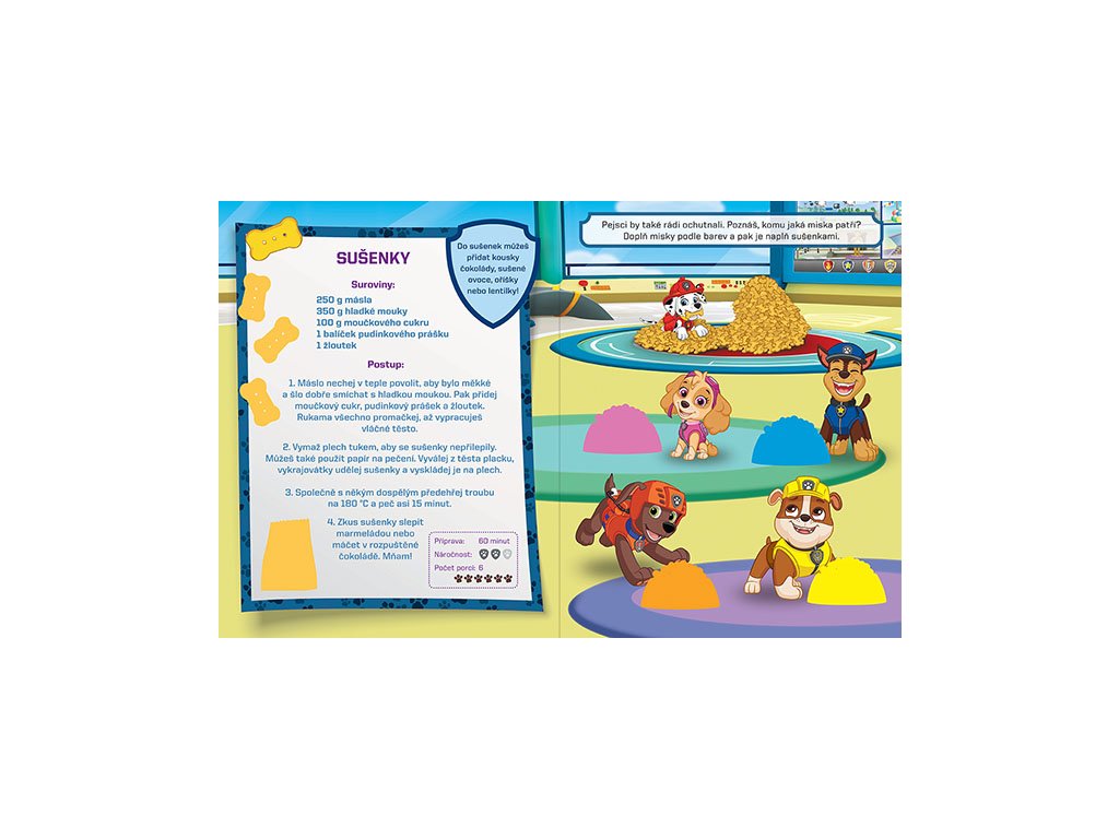 Vaříme a mlsáme s Tlapkovou patrolou S Tlapkovou patrolou do kuchyne Zažite zábavu pri varení a mlsaní so samolepkami Tlapkovej patroly! Táto knižka plná receptov a aktivít pre deti obsahuje 16 strán plných zábavy, na ktorých nájdete viac než 100 samolepiek so 4 rôznymi vôňami. Deti sa môžu dozvedieť, ako pripraviť jednoduché a chutné recepty, a pritom si užívať zábavné samolepkové aktivity so svojimi obľúbenými postavičkami z Tlapkovej patroly.Dodatočné parametre