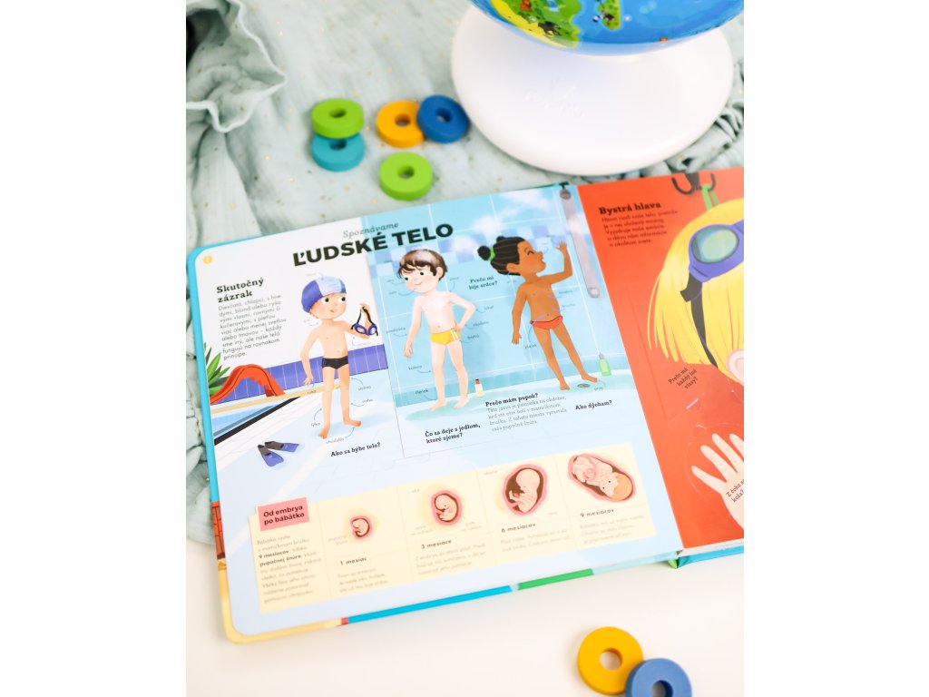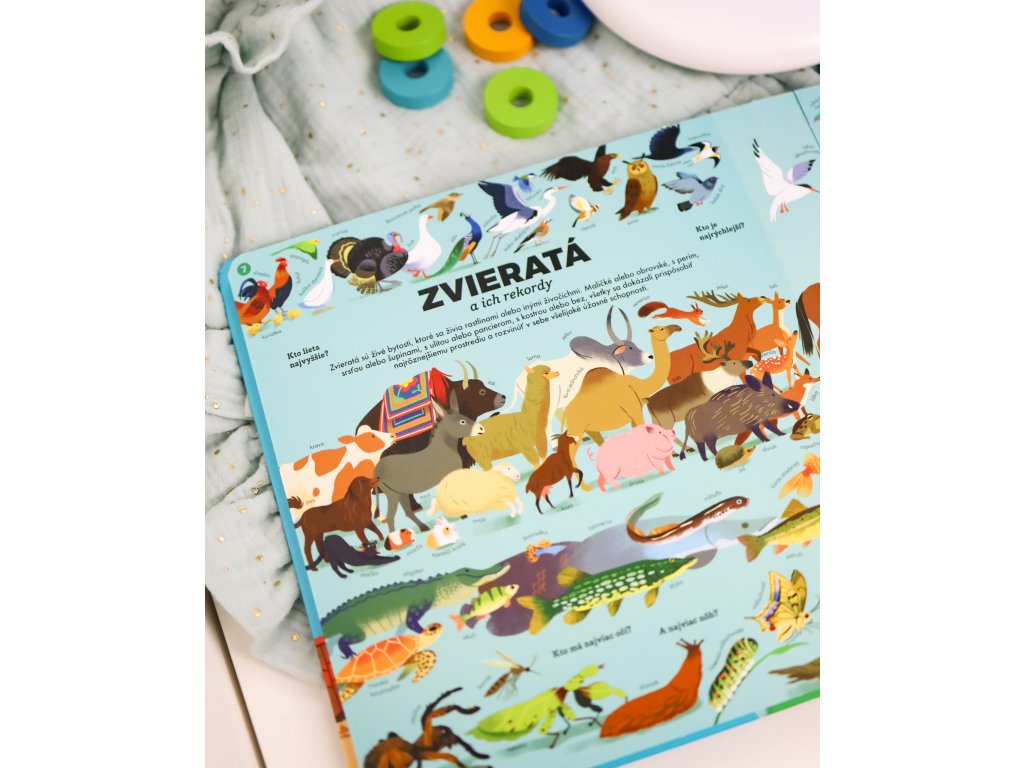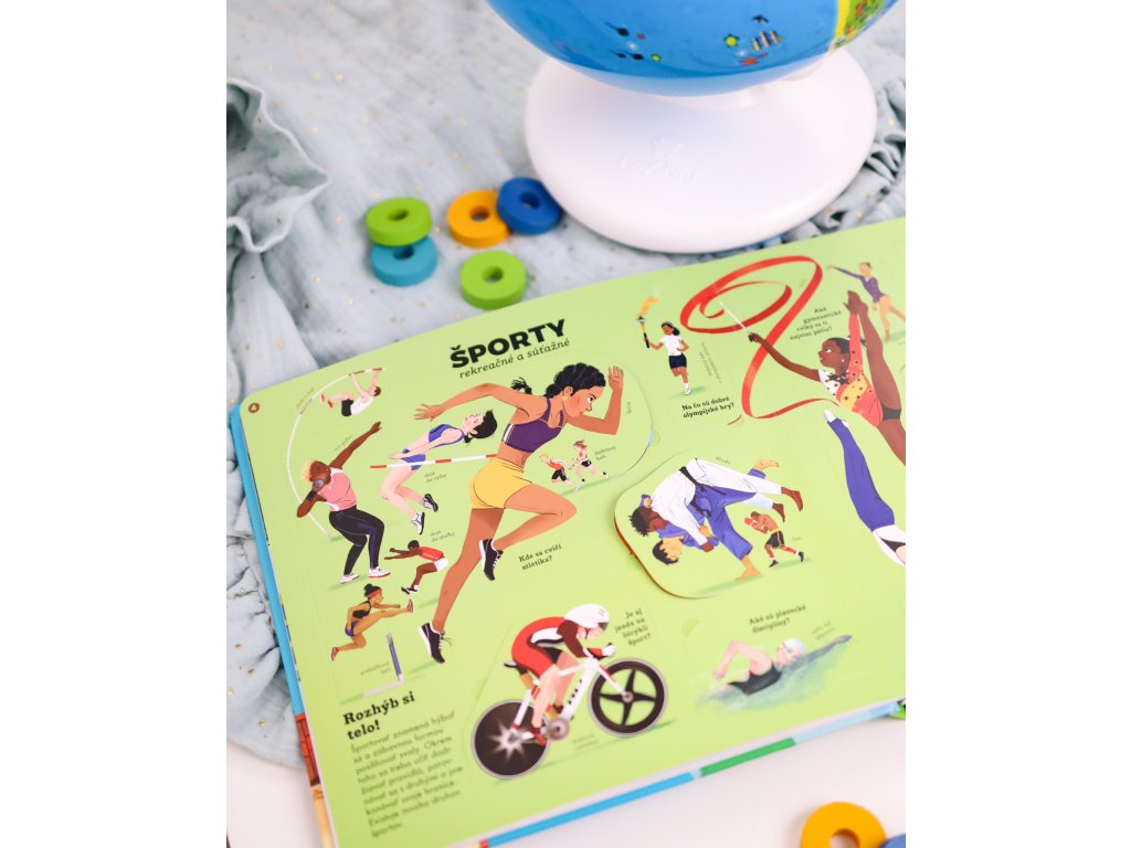 Všeobecná encyklopédia v pohybe Objavujte svet cez ilustrácie a odklápacie okienka Kniha prináša viac ako 180 otázok a odpovedí o fascinujúcich témach, ako sú telo, zvieratá, vesmír, príroda, dejiny, šport a ďalšie. S odklápacími okienkami a pútavými ilustráciami sa deti dozvedia, ako funguje svet okolo nich. Tento interaktívny sprievodca je ideálny na hlasné čítanie, kde sa deti učia nové informácie a zároveň rozvíjajú svoju zvedavosť. Každé odklápacie okienko odhaľuje podrobnosti o rôznych témach, čím podporuje ich záujem a predstavivosť. Okrem toho kniha ponúka množstvo otázok, ktoré podnecujú deti k premýšľaniu a hlbšiemu pochopeniu vecí okolo nich.Dodatočné parametre