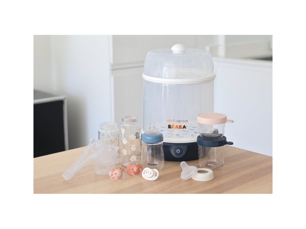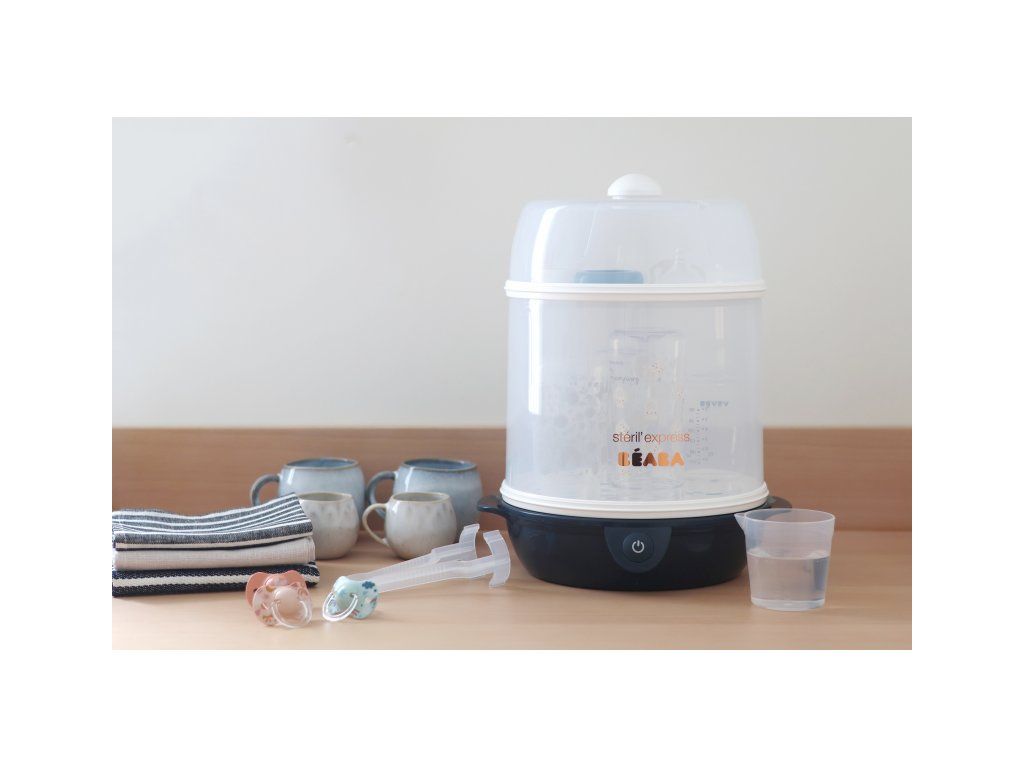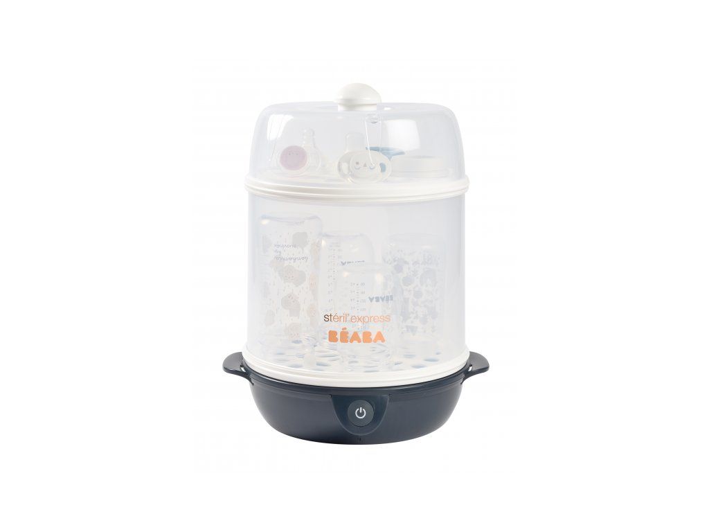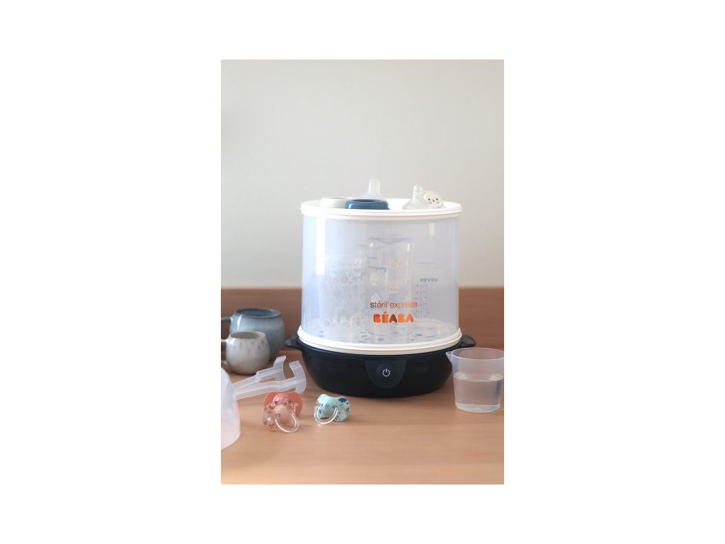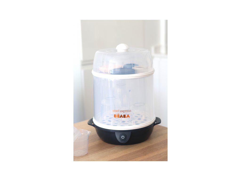 Elektrický parný sterilizátor Beaba Express je určený na rýchlu a pohodlnú sterilizáciu dojčenských fliaš a doplnkov. Sterilizácia trvá iba 6 minút a zničí 99,99% všetkých baktérií.