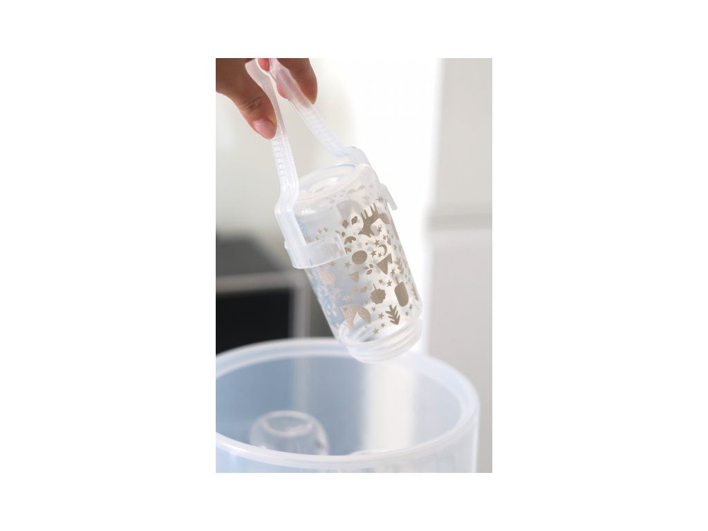 Súčasťou balenia je odmerka na vodu a kliešte na cumlíky.