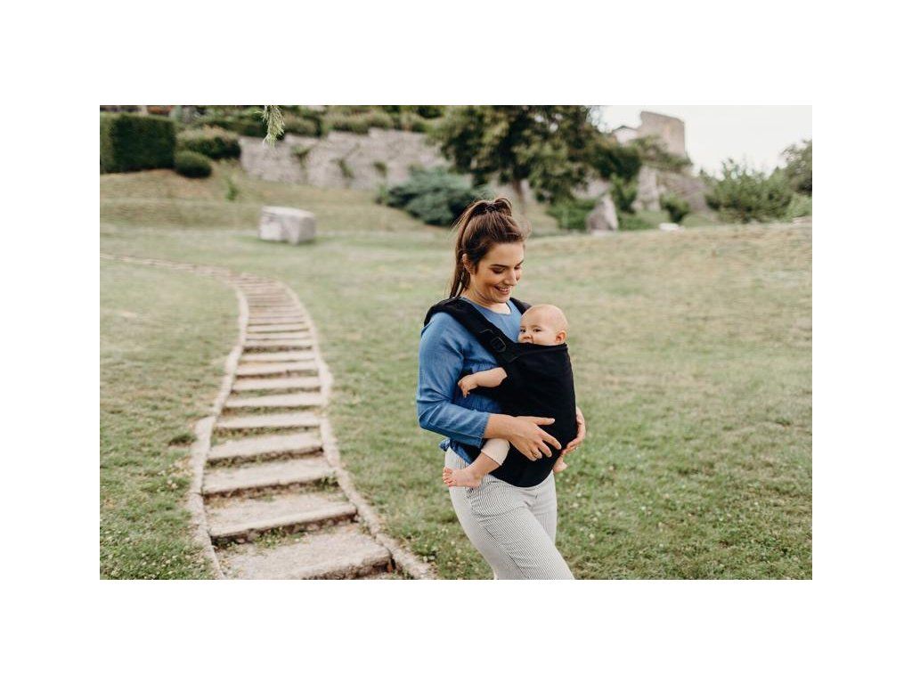 Bábätká mladšie ako 4 mesiace sa môžu v tomto výrobku udusiť, ak je ich tvár pritlačená pevne proti vášmu telu. Najväčšie riziko udusenia majú predčasne narodené deti a deti s dýchacími problémami. Nepripínajte dieťa príliš pevne k telu. Zabezpečte dostatočný priestor pre pohyb hlavy. Tvár dieťaťa musí byť neustále voľná a bez prekážok. Ak dojčíte dieťa v nosiči, vždy ho po kŕmení upravte tak, aby jeho tvár nebola pritlačená k vášmu telu.