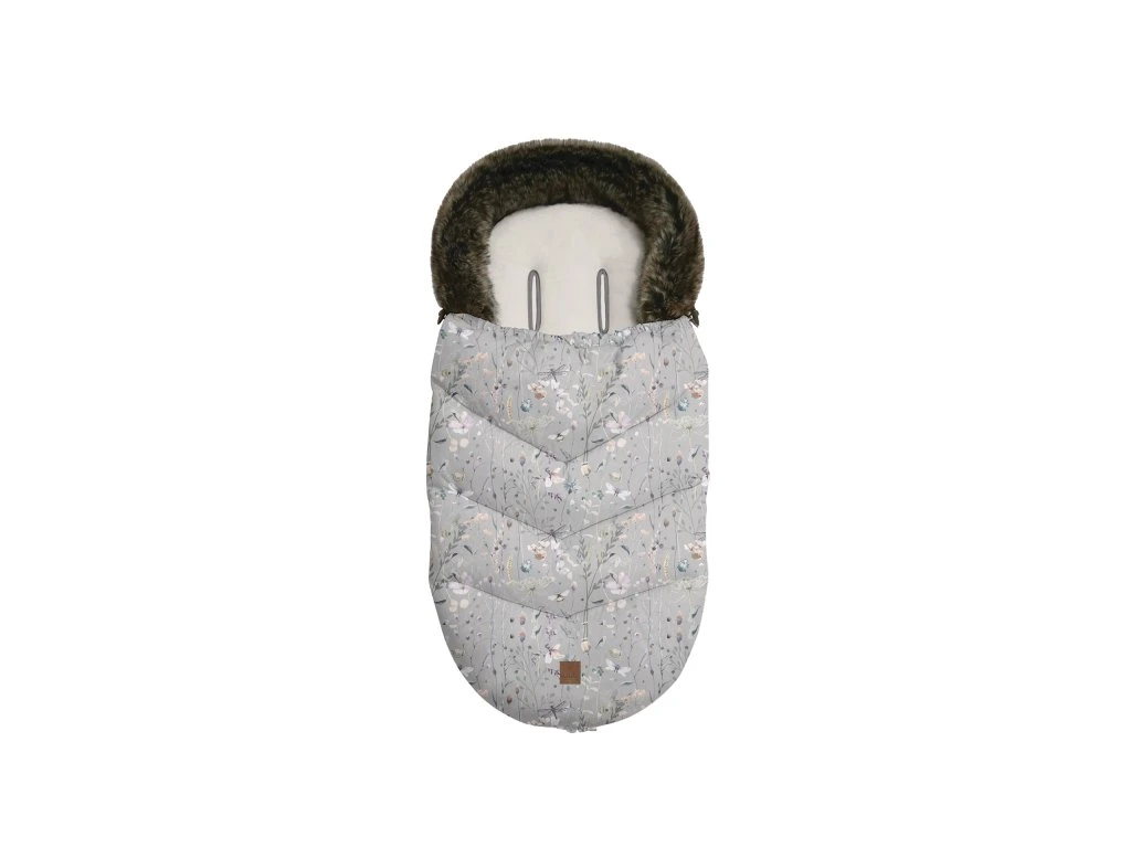 Teplý fusak do kočíka s vodeodolným vonkajším povrchom a mäkkou fleecovou podšívkou vo vnútri dokonale ochráni vaše dieťa v kočíku pred nepriazňou počasia. Odnímateľný lem z umelej kožušiny a luxusná prešívaná tkanina s krásnou kvetinovou potlačou dotvára elegantný vzhľad fusaku. Odnímateľný nánožník vybavený celoobvodovým zipsom uľahčuje manipuláciu s dieťaťom.