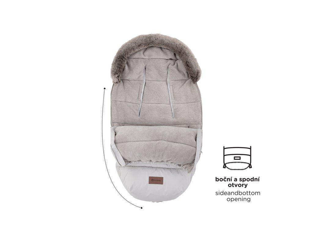 - V spodnej časti sa zipsy stretávajú, ich rozopnutím vznikne praktický otvor na nožičky dieťatka. V zadnej časti je inteligentné prehnuté vrecko, ktoré zabraňuje skĺznutiu fusaka.