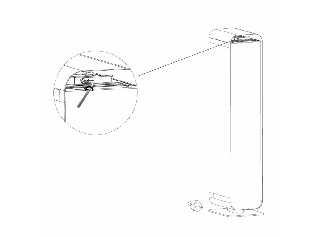 Pre zaistenie vyššej bezpečnosti proti vystaveniu UV-C žiareniu ponúkame ďalšiu ochranu proti otvoreniu krytu žiarovky. Je to špeciálna imbusová skrutka, ktorá je k dispozícii s dodávaným kľúčom.