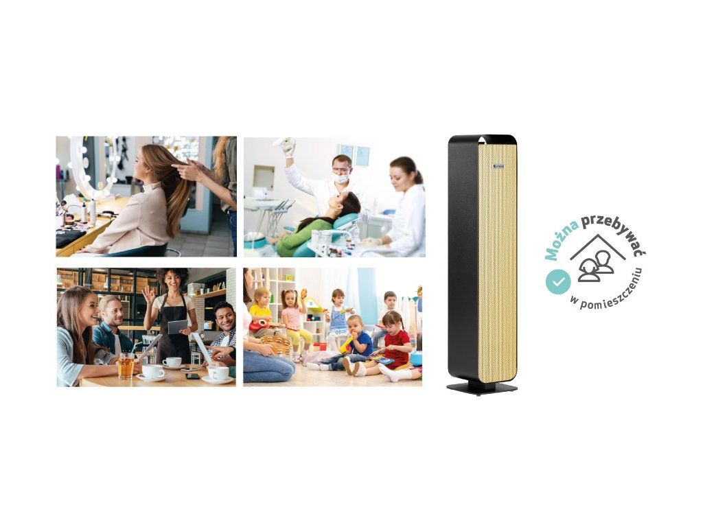 Vďaka nútenému obehu vzduch prechádza vnútornou časťou žiariča, kde je osvetlený a dezinfikovaný, a potom vytlačený von. Tienené UV-C svetlo nejde von zo žiariča, takže ho možno použiť v interiéroch, kde je potrebné bezpečne a účinne dezinfikovať vzduch za prítomnosti ľudí.