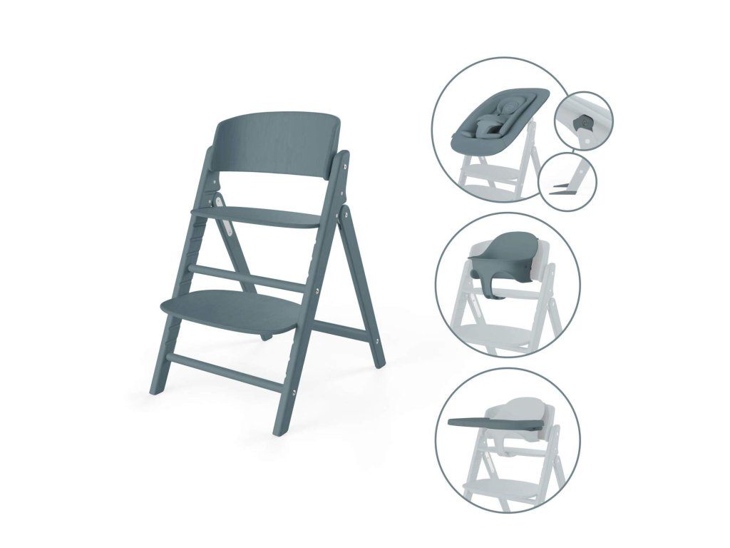 S touto sadou 4-in-1 môžete používať ikonickú detskú stoličku Click & Fold od narodenia až do 99 rokov. Táto detská stolička z masívneho bukového dreva sa dá kombinovať s hojdacím kresielkom Bouncer Nest alebo detskou sadou Baby Set s podnosom, a stane sa tak trvalým spoločníkom.