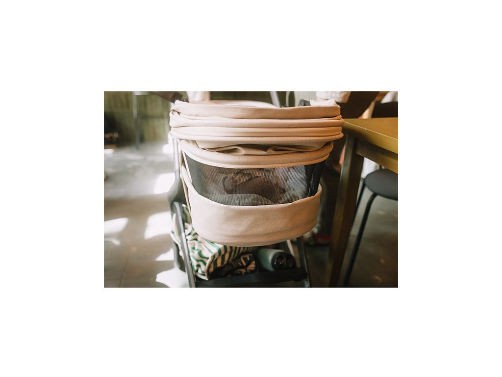 Pre ochranu pred rušným okolitým svetom a rôznymi poveternostnými podmienkami vás ochráni slnečná strieška. Tkaniny poskytujú ochranu 50+ UPF a sú vodoodpudivé. Rozšíriteľná časť striekačky ponúka ešte viac tieňa a ochrany, a možno ju sklopiť z 90 až na 140 stupňov.