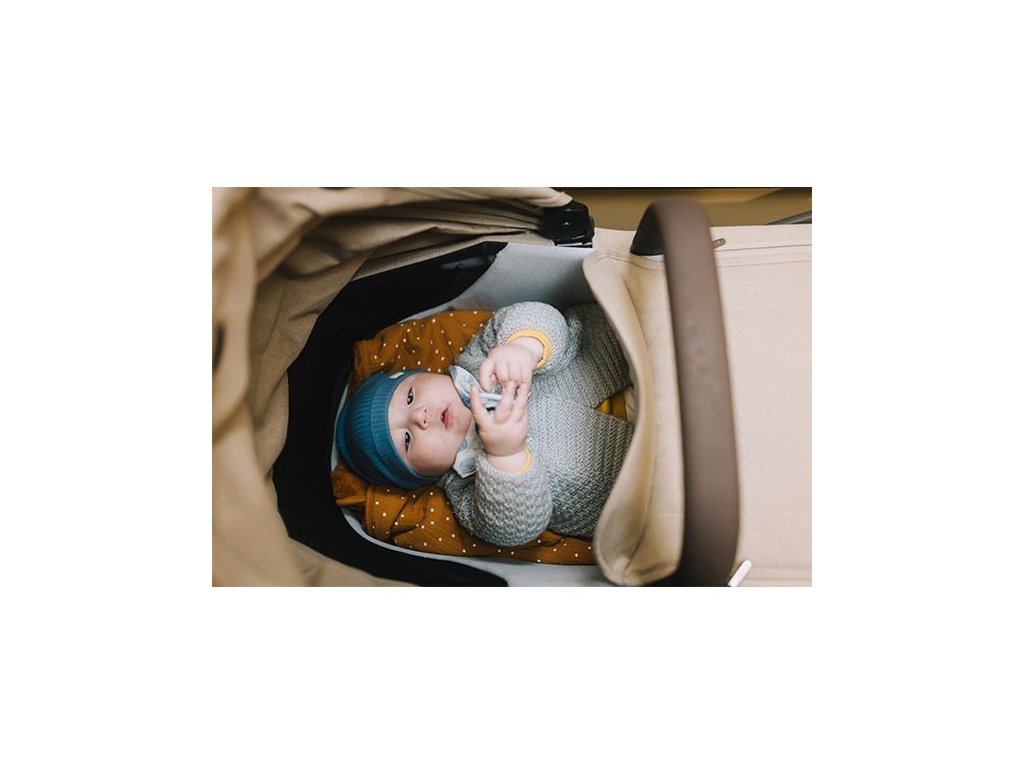 Počas prvých šiestich mesiacov si vaše bábätko užije prvotriednu bezpečnosť a dostatok priestoru v hlbokej vaničke Joolz Hub². Je navrhnutá pre pokojný a pohodlný spánok. Súčasťou je 77 cm dlhý prievzdušný a pohodlný matrac s prateľnou ultra mäkkou vložkou z recyklovaného polyesteru (rPET).
