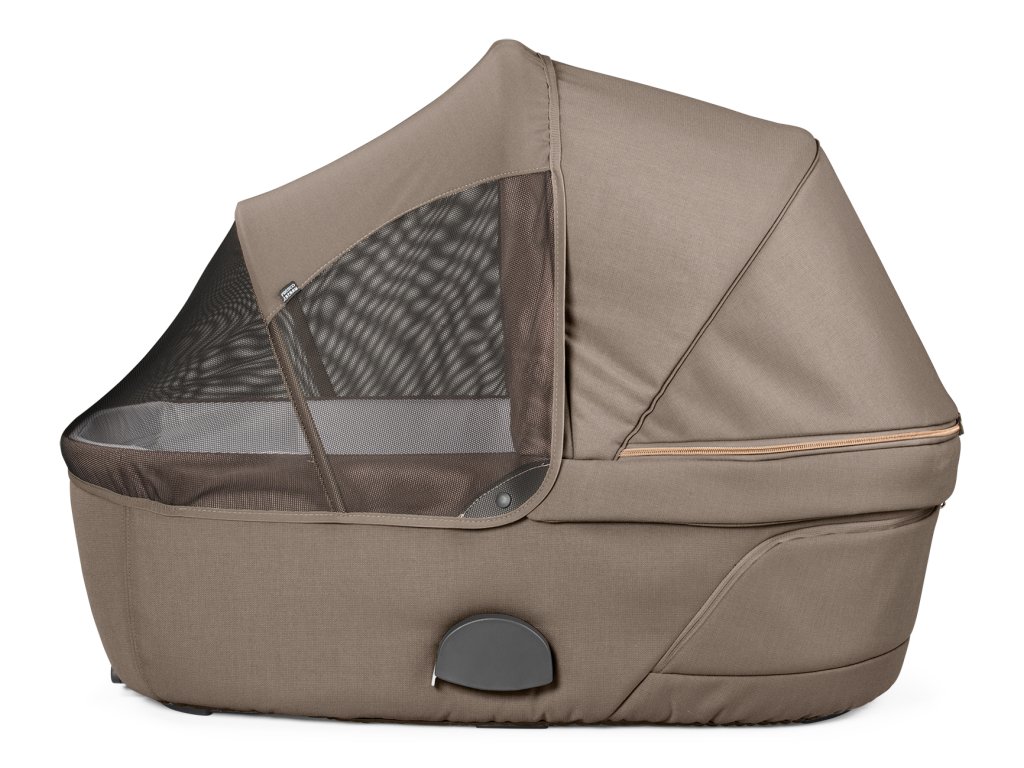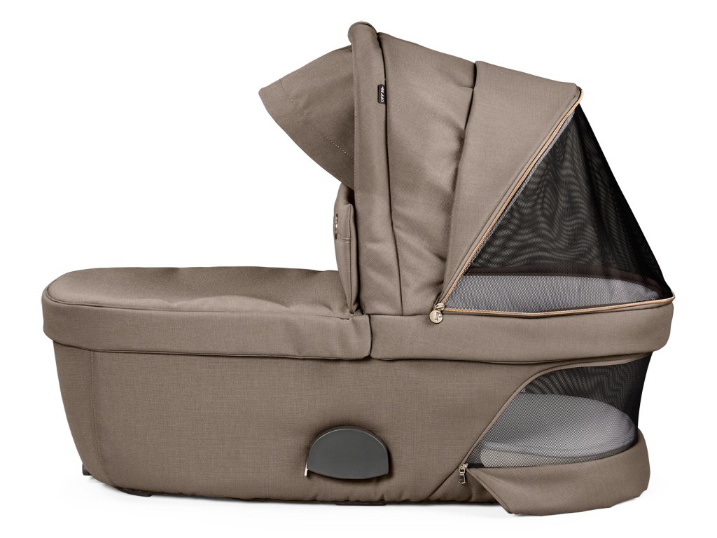 Matrace a podšívka je vyrobená z inovatívnej priedušnej tkaniny Fresco Jersey. Je rýchloschnúca, hygienická, mäkká a pohodlná. Panoramatické okno zaistí lepšiu cirkuláciu vzduchu a skvelý výhľad na vaše bábätko. Korbička má striešku so slnečným šiltom UPF 50+ a tiež praktické úložné vrecko.