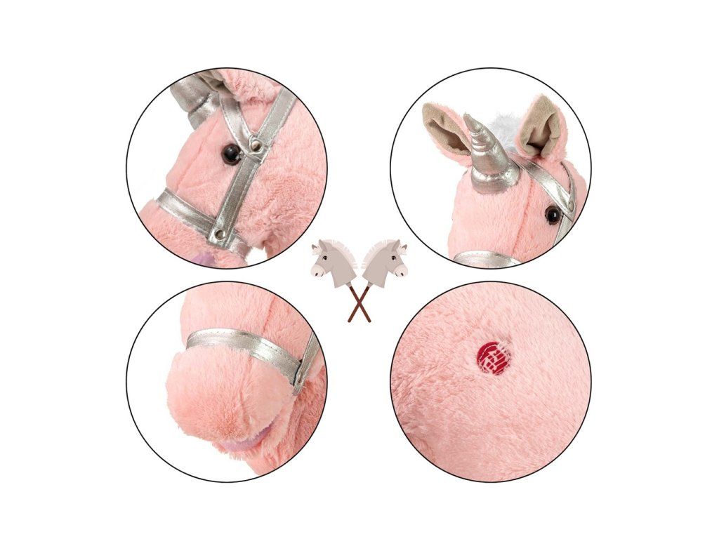 Vysoká kvalita: Koník je vyrobený s dôrazom na detaily a bezpečnosť z materiálov príjemných na dotyk. Mäkká plyšová hlava a pevná drevená tyč umožňujú dlhú a bezpečnú hru.