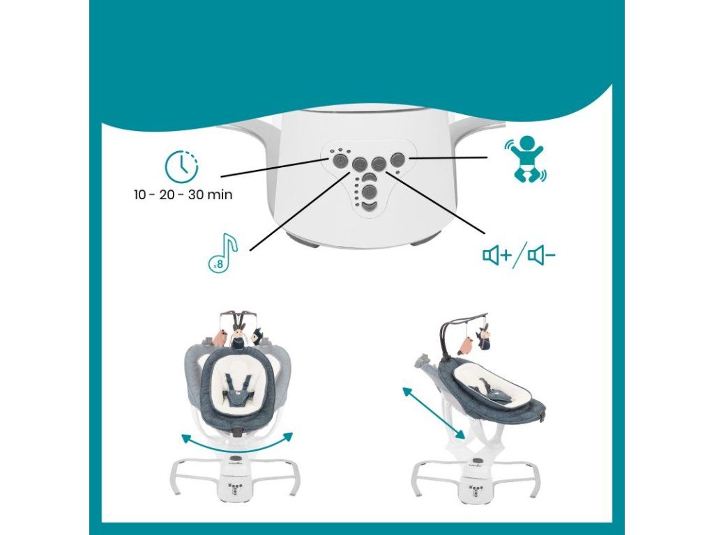 - nastaviteľná doba hojdania (10-20-30 minút) a nastaviteľná hlasitosť