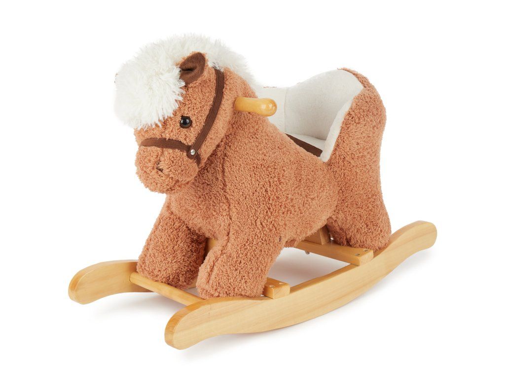 Táto roztomilá hojdacia hračka v podobe koníka poteší chlapcov aj dievčatá od 9 mesiacov! Vďaka hebkému plyšu a pevnému drevenému rámu podporuje motorické zručnosti a poskytuje množstvo bezpečnej zábavy pri hojdaní. Koník je vybavený mäkkým, pohodlne polstrovaným sedadlom s bezpečnostným pásom, ktoré poskytuje maximálne pohodlie a ochranu aj tým najmenším deťom. Hojdanie prirodzene podporuje motoriku, rozvíja rovnováhu a napomáha pohybovej aktivite. Stabilná konštrukcia z masívneho dreva má ochranu proti prevráteniu, deti sa môžu držať drevených držadiel. Nízka výška sedadla (cca 14 cm) uľahčuje malým deťom bezpečné nasadanie aj zosadanie.