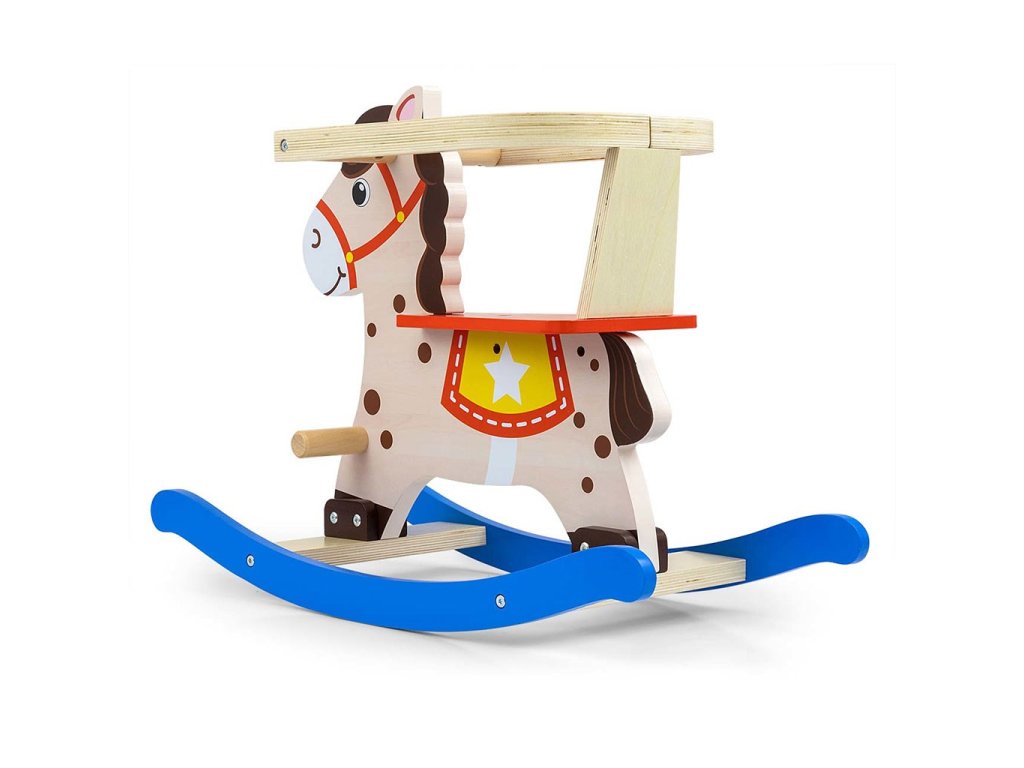 Drevený hojdací koník s operadlom Milly Mally Lucky 12 modro-červený - 55095