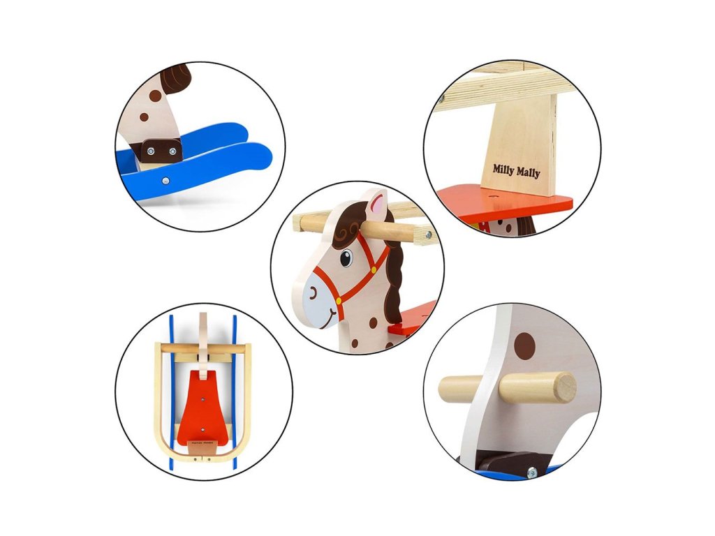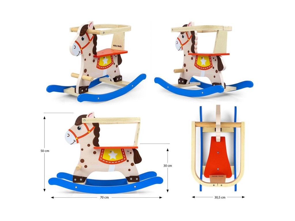 Jedinečný hojdací kôň Lucky od Milly Mally. Navrhnutý tak, aby vyhovoval potrebám každého fanúšika koní. Všetky deti milujú hojdanie na koníkovi... pripomína im hojdanie v maminom náručí. Naša hračka je vyrobená z dreva, materiálu, ktorý je dnes vyhľadávaný pre svoj nadčasový vzhľad.