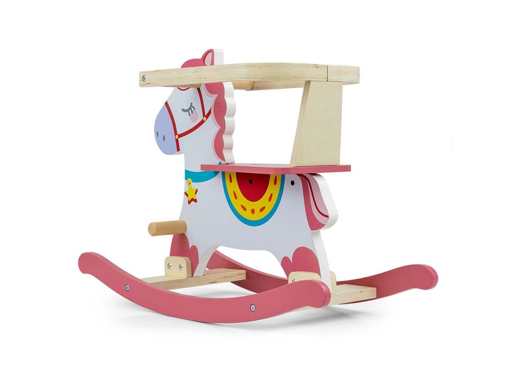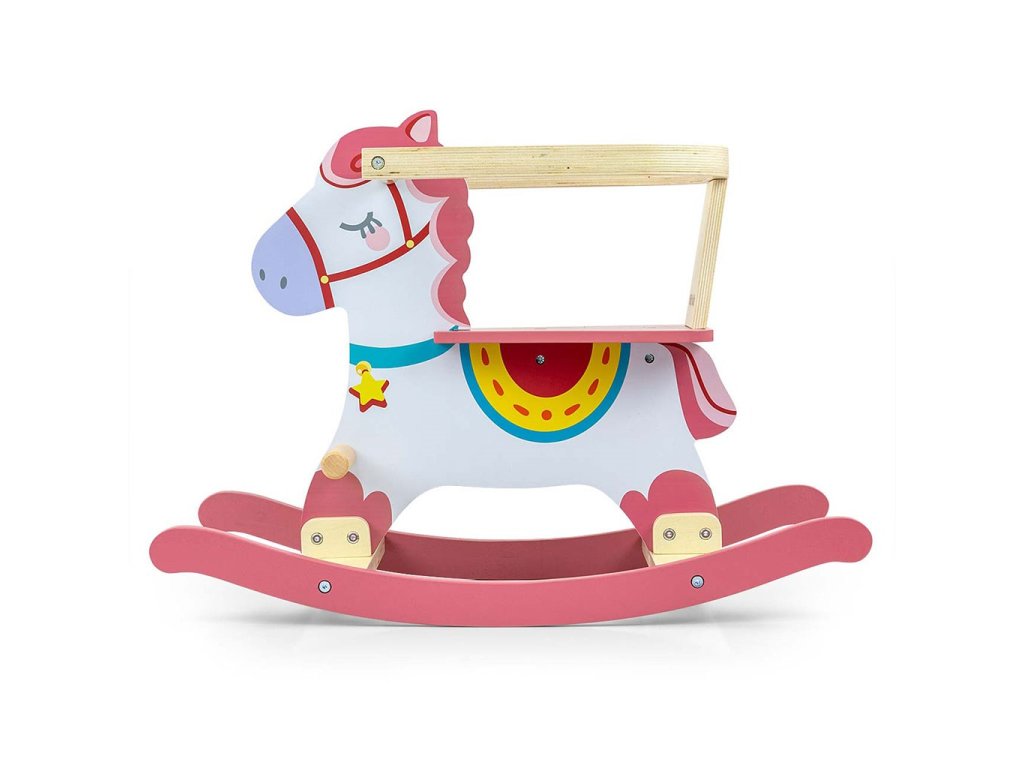 Drevený hojdací koník s operadlom Milly Mally Lucky 12 ružový - 55152