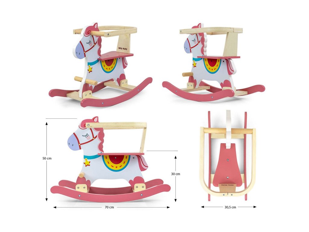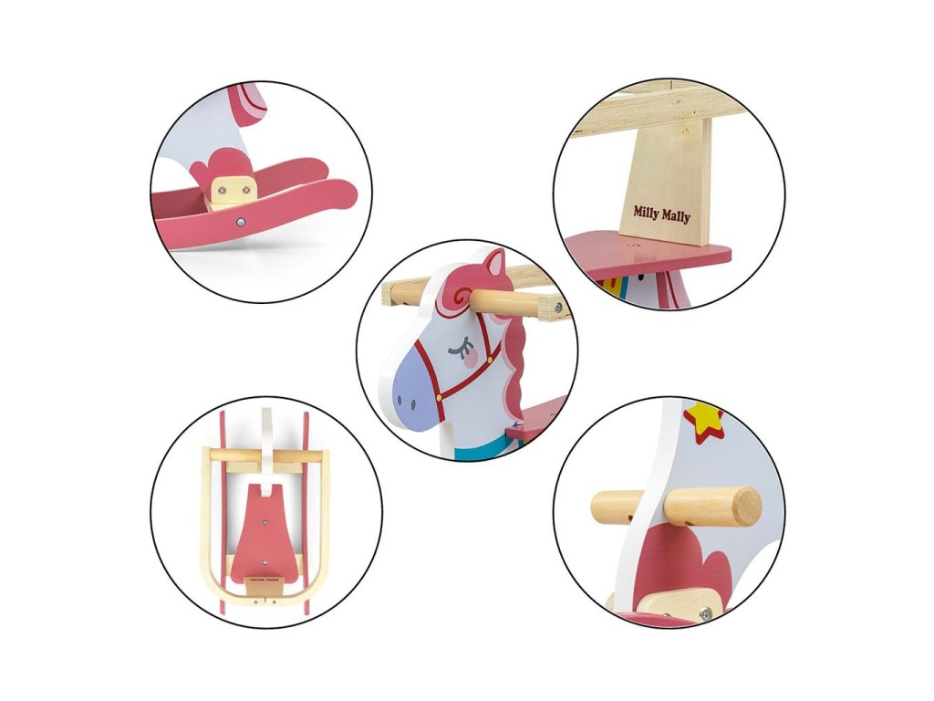 Jedinečný hojdací kôň Lucky od Milly Mally. Navrhnutý tak, aby vyhovoval potrebám každého fanúšika koní. Všetky deti milujú hojdanie na koníkovi... pripomína im hojdanie v maminom náručí. Naša hračka je vyrobená z dreva, materiálu, ktorý je dnes vyhľadávaný pre svoj nadčasový vzhľad.