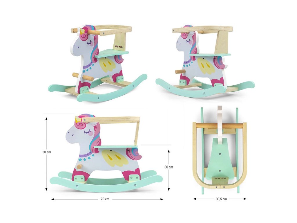 Drevený hojdací koník s operadlom Milly Mally Lucky 12 Unicorn - 55153
