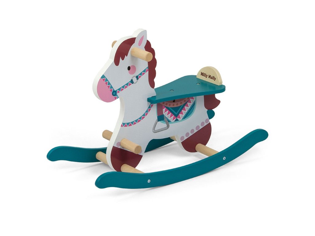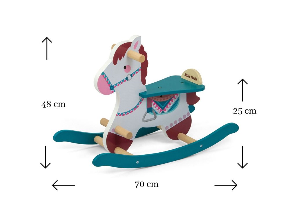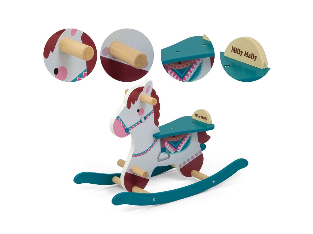 Drevený hojdací koník s operadlom Milly Mally Lucky 18 modrý - 55582